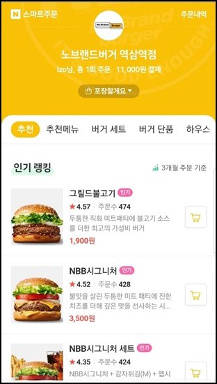 네이버 포인트도 쌓이고 핸드폰으로 미리 주문이 가능해서 좋은 것 같아요.