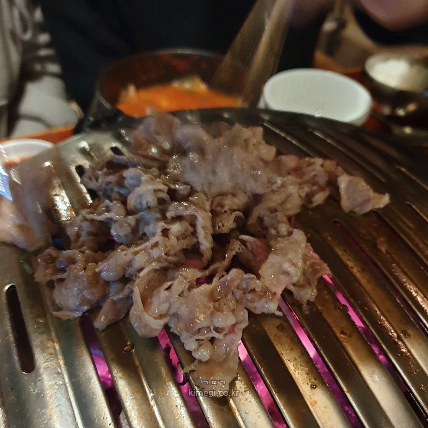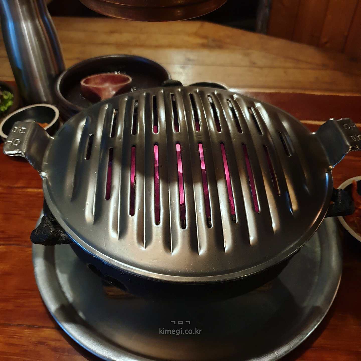 화로로 숯불이 나와서 고기를 미리 잘라 준 것 같아요.