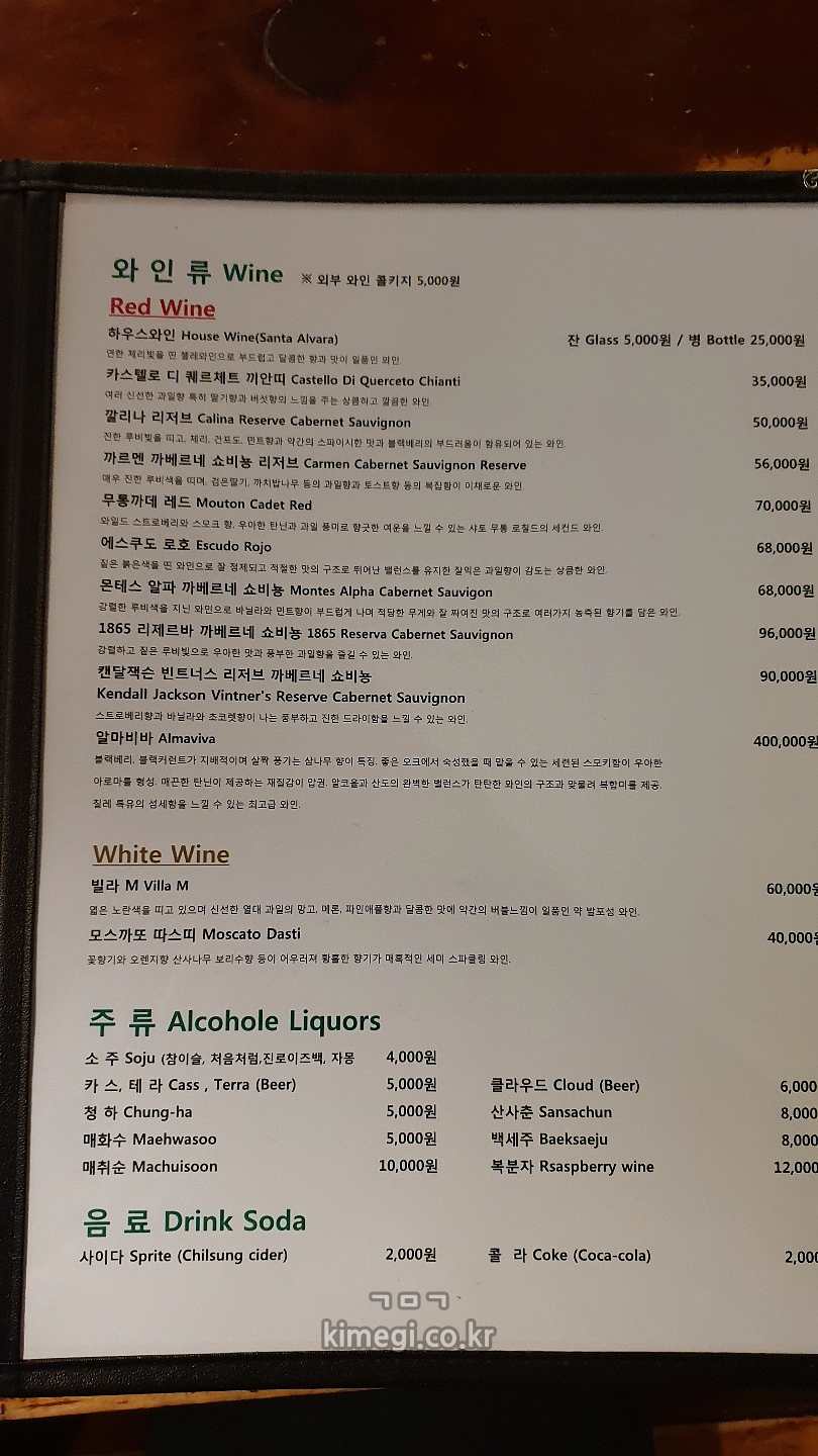 하우스 와인을 GLASS로 판매하니 가볍게 먹어도 좋을 것 같아요.