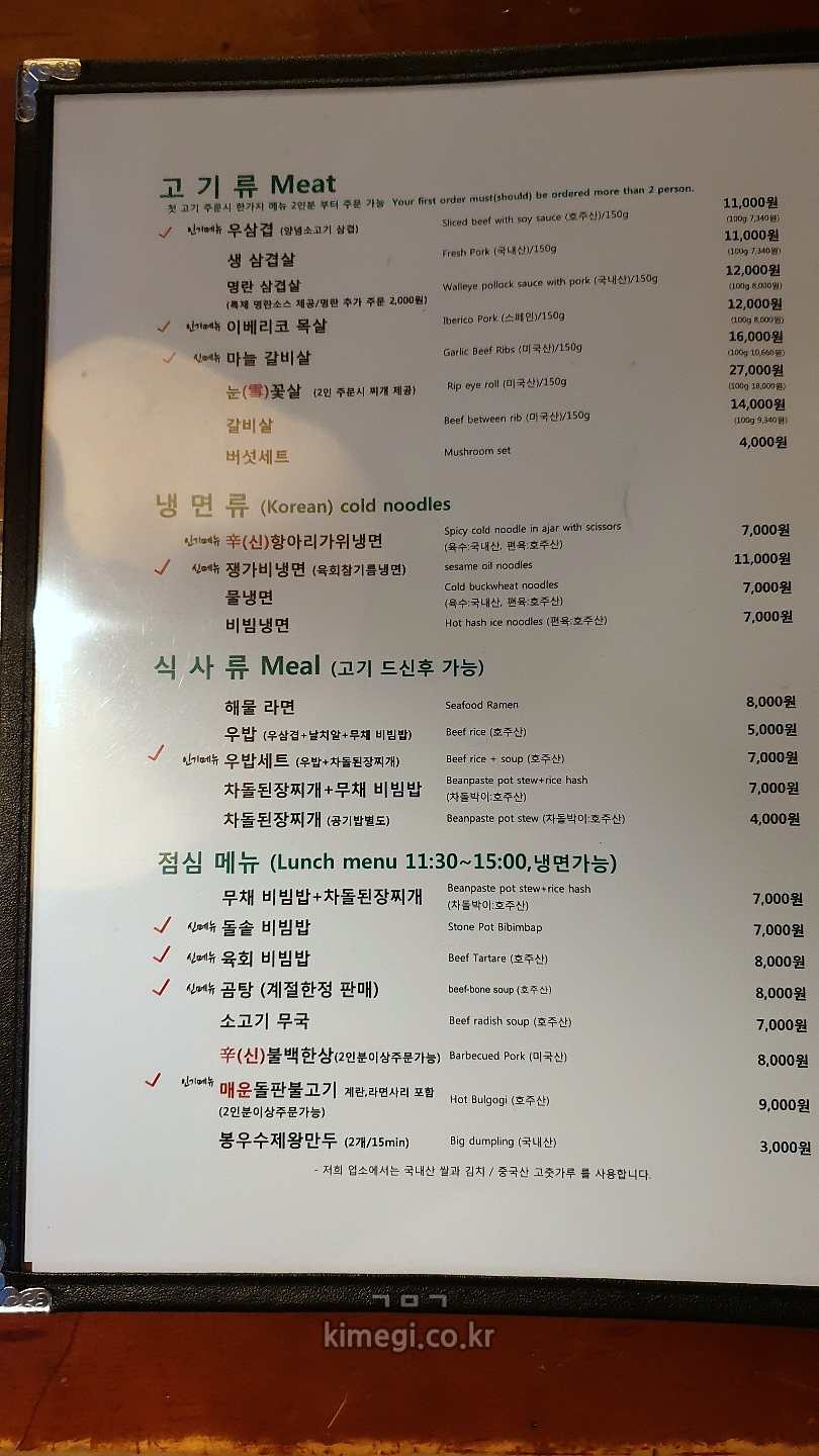 고기뿐만 아니라 냉면, 식사 류도 있습니다.