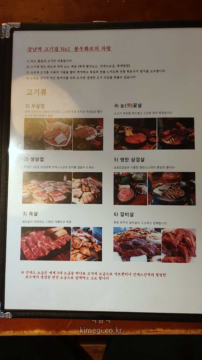 강남역 봉우화로에는 다양한 고기를 판매합니다.