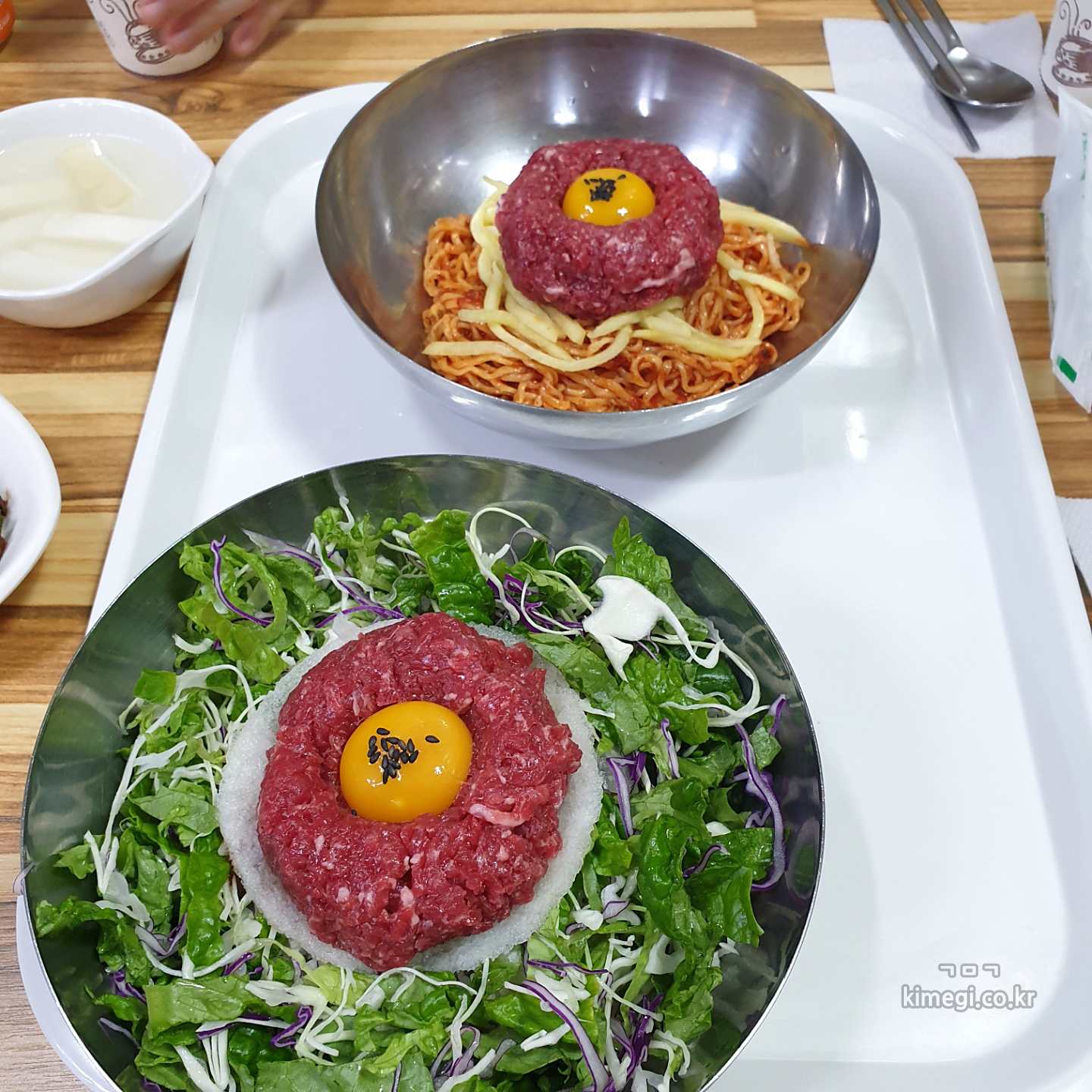 저희는 육회 비빔밥과 육회 비빔라면을 주문했어요.