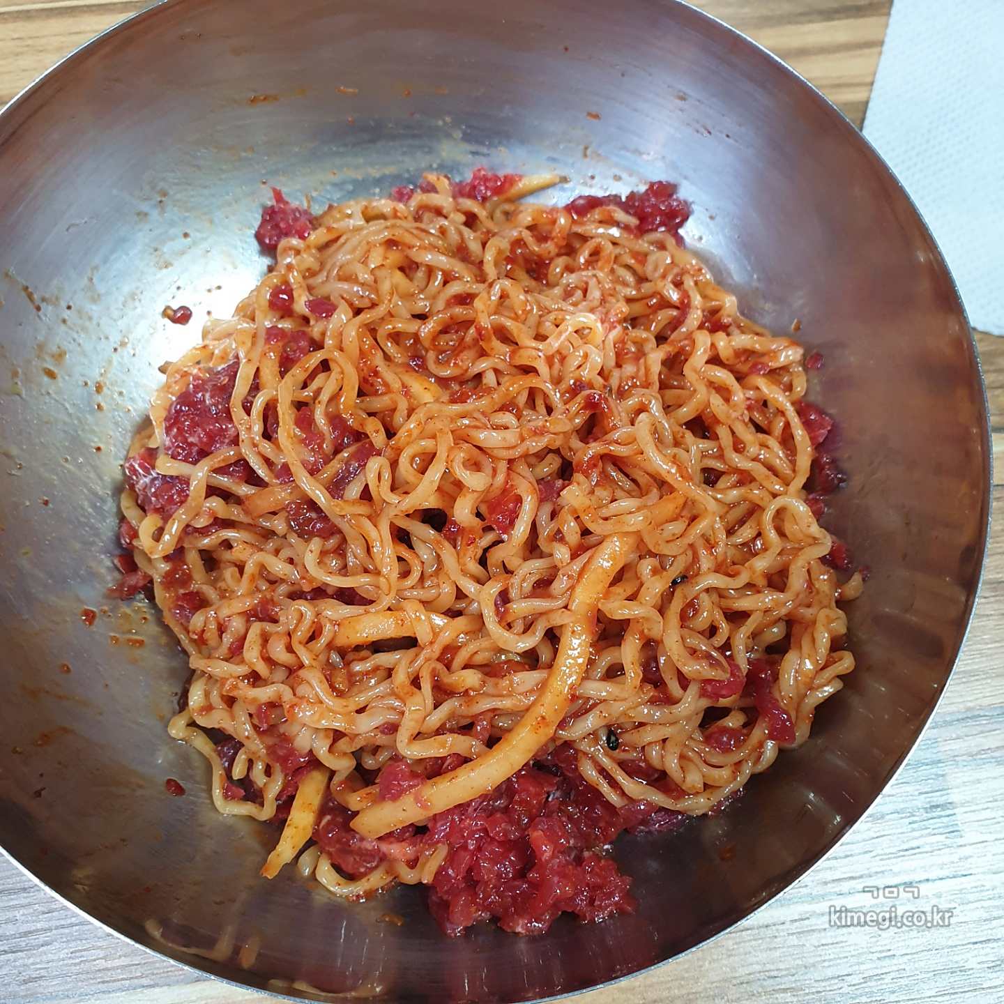 비빔라면은 여자 친구가 정말 좋아하는 맛이었어요.