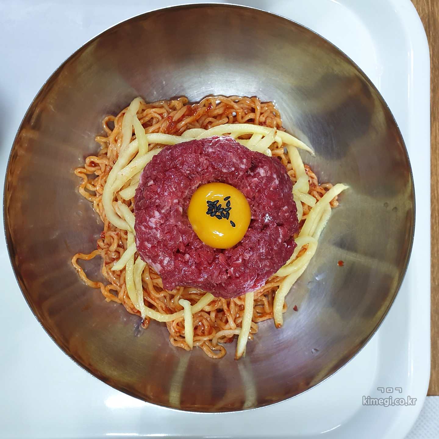 저희는 육회 비빔밥과 육회 비빔라면을 주문했어요.