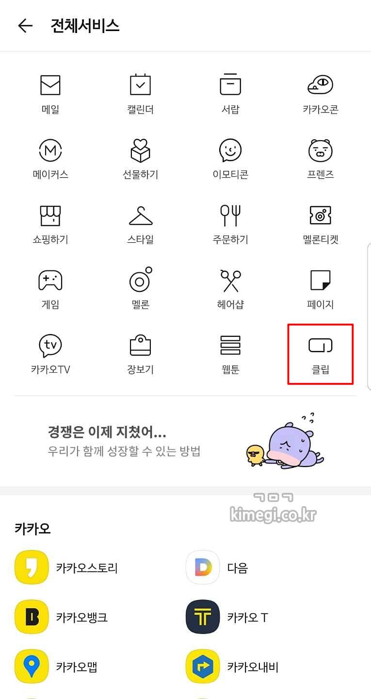 가입하시면 카카오 전체 서비스 가장 하단부에 KLIP 창이 생깁니다.