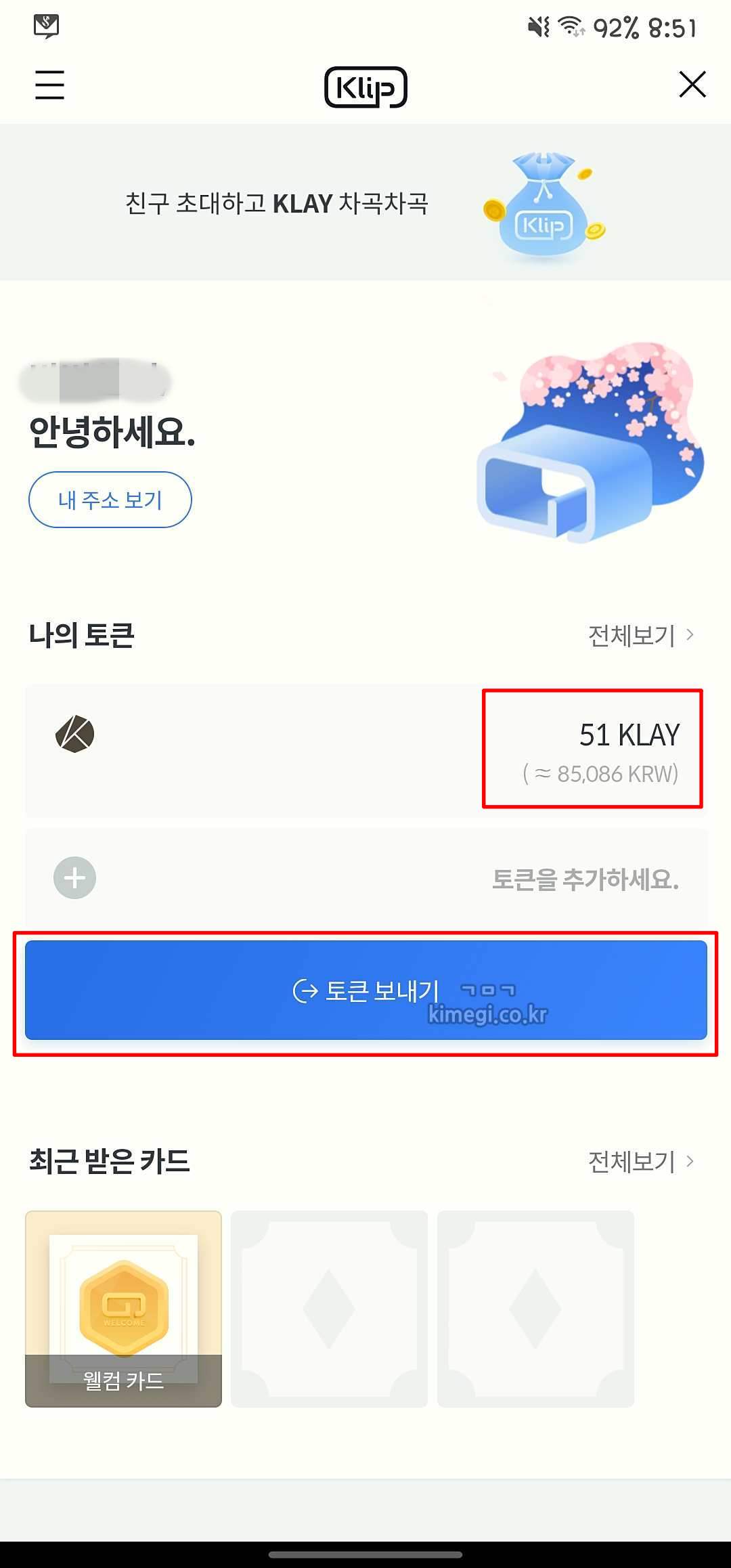 왼쪽은 처음 생겼을 때 가입한 친구의 KLIP 지갑입니다.
