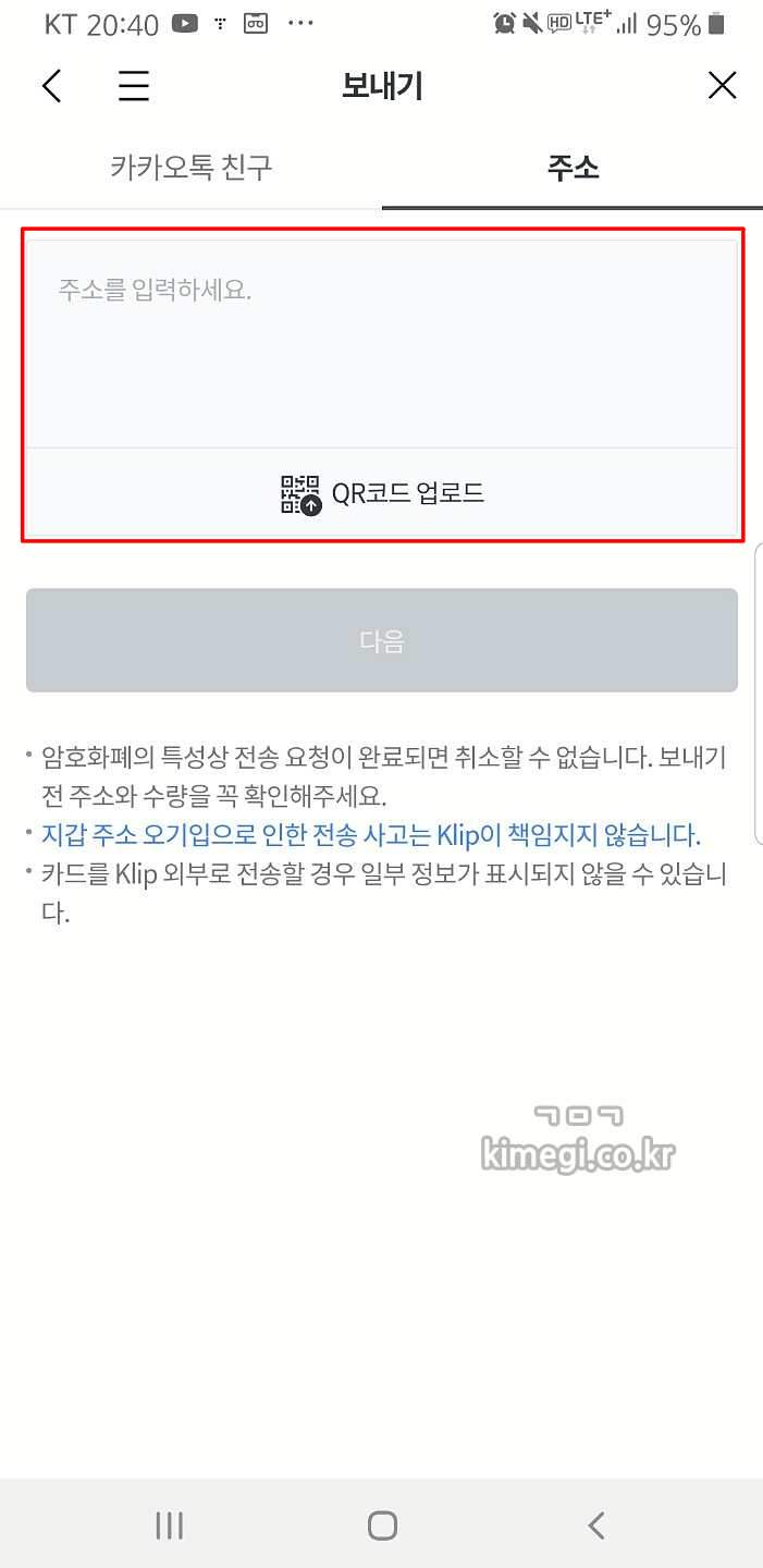 본인이 가지고 있는 가상화폐를 클립을 이용 중인 카톡 친구에게 쉽게 보낼 수 있는 기능입니다.
