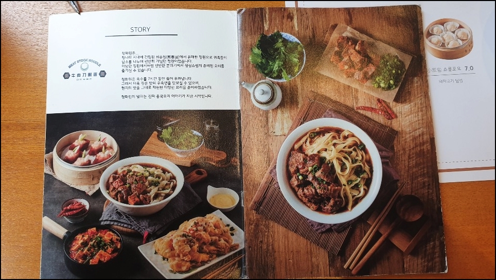 신촌 청화원의 자랑인 우육 도삭면과 소룡포오를 주문했어요.