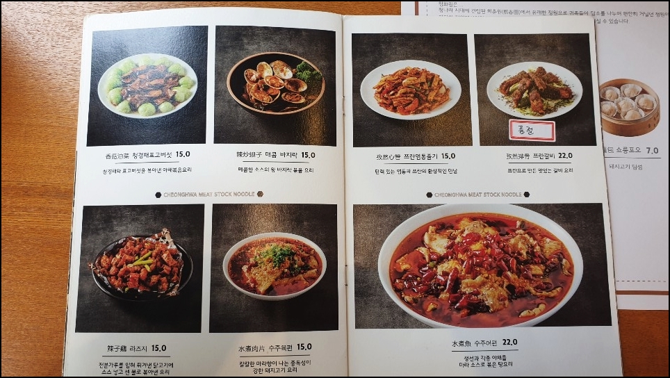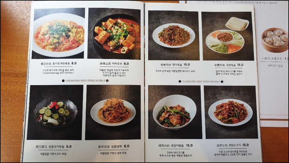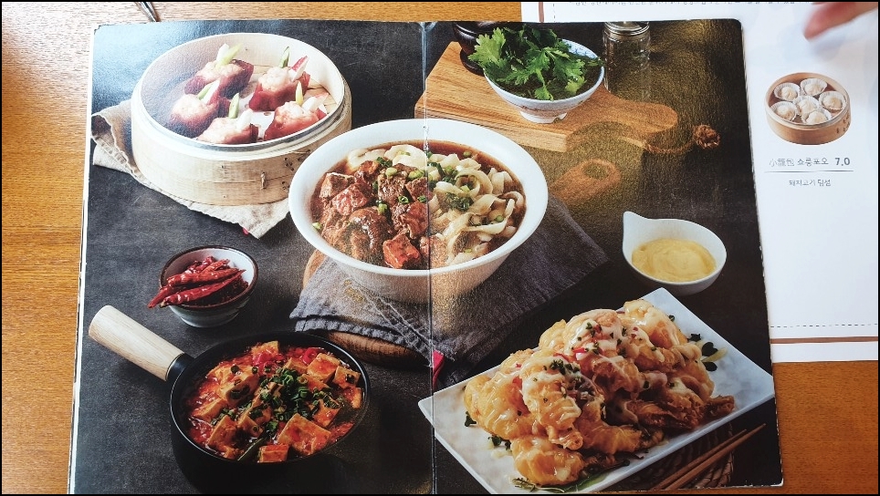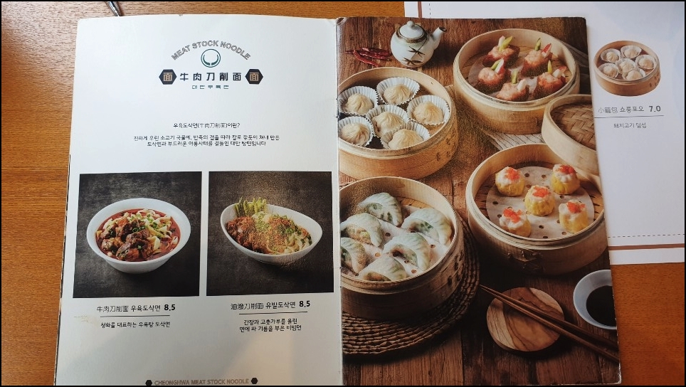 신촌 청화원의 자랑인 우육 도삭면과 소룡포오를 주문했어요.