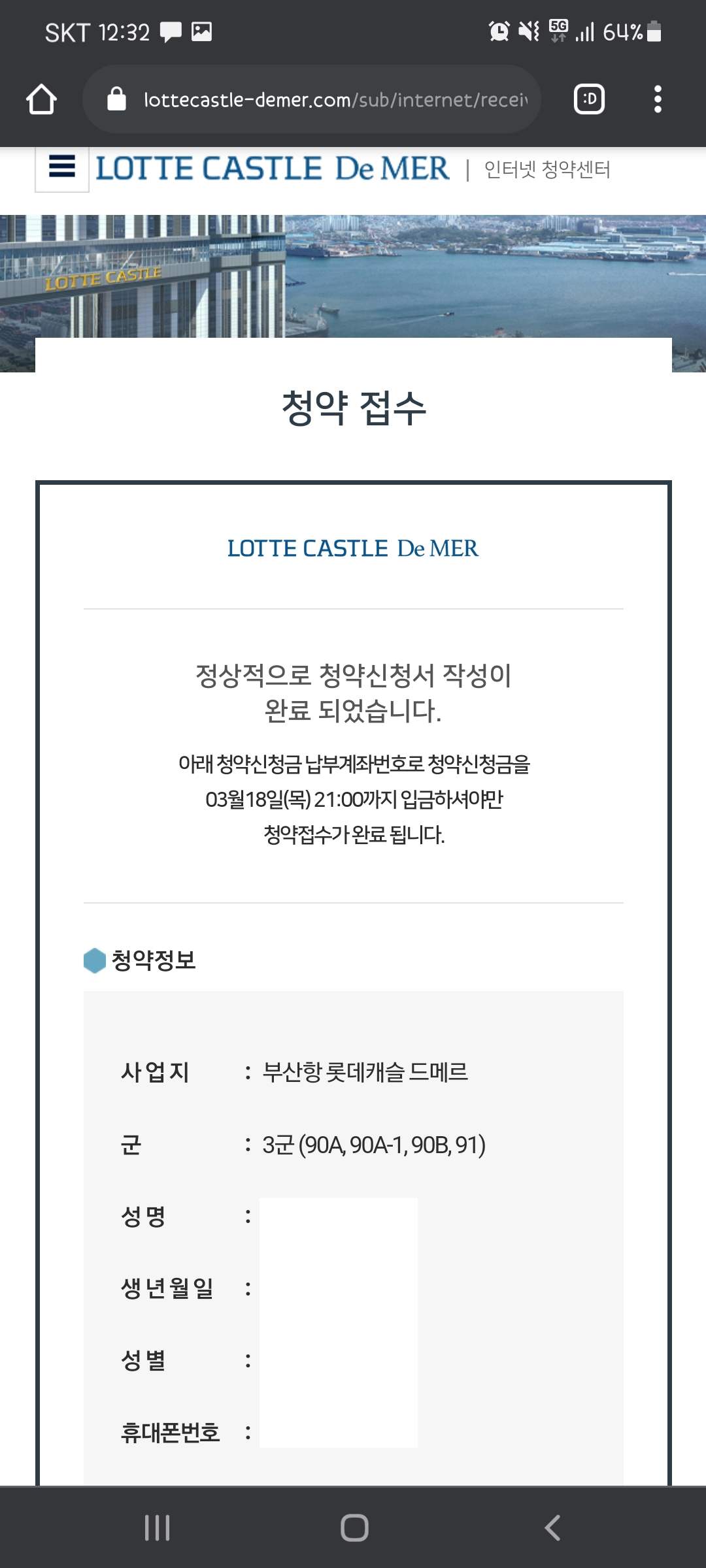| 롯데 드메르 경쟁률 / 당첨일 / 청약신청금 입금 완료 (6) | 2021.03.22 |