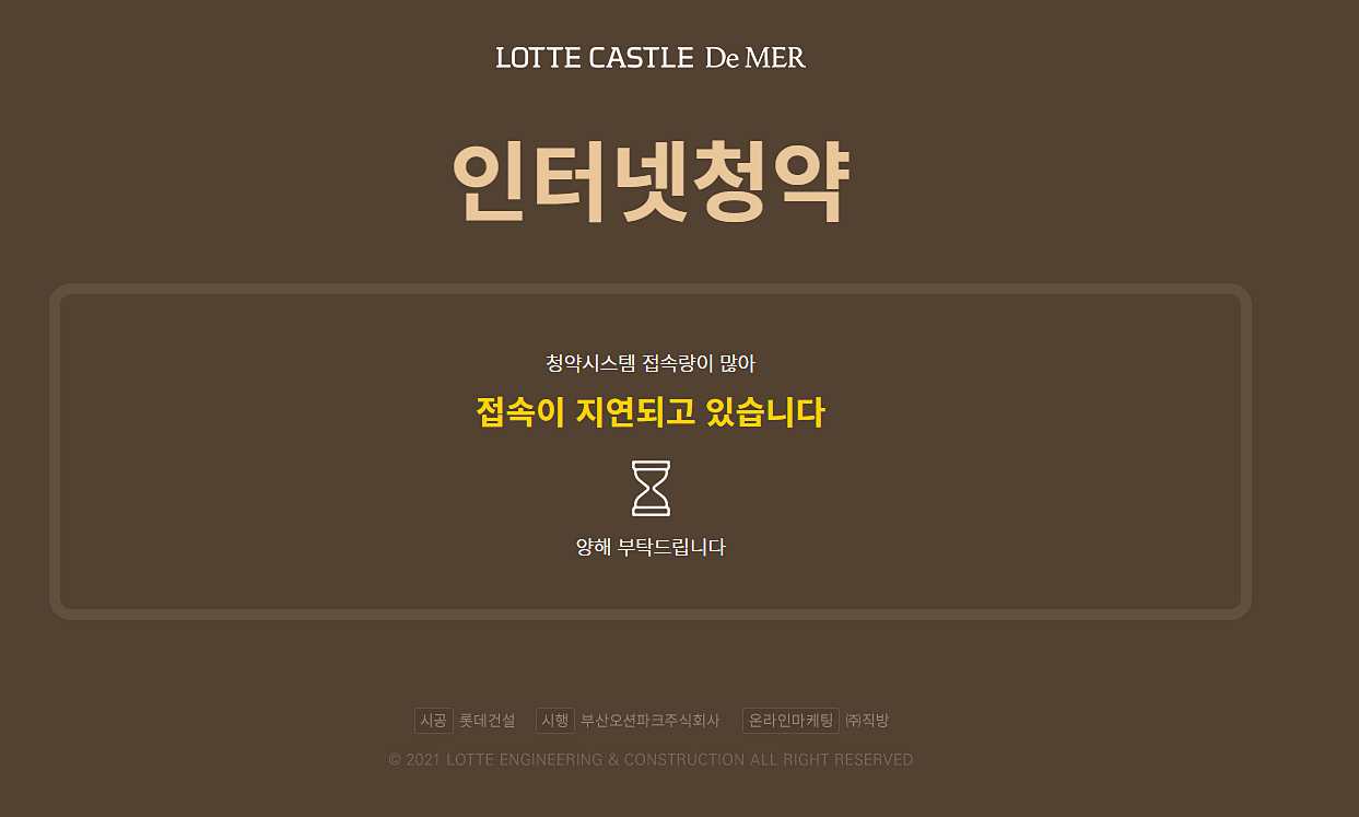 프리미엄 엄청 붙은 롯데캐슬 드메르 접속지연으로 청약 불가능