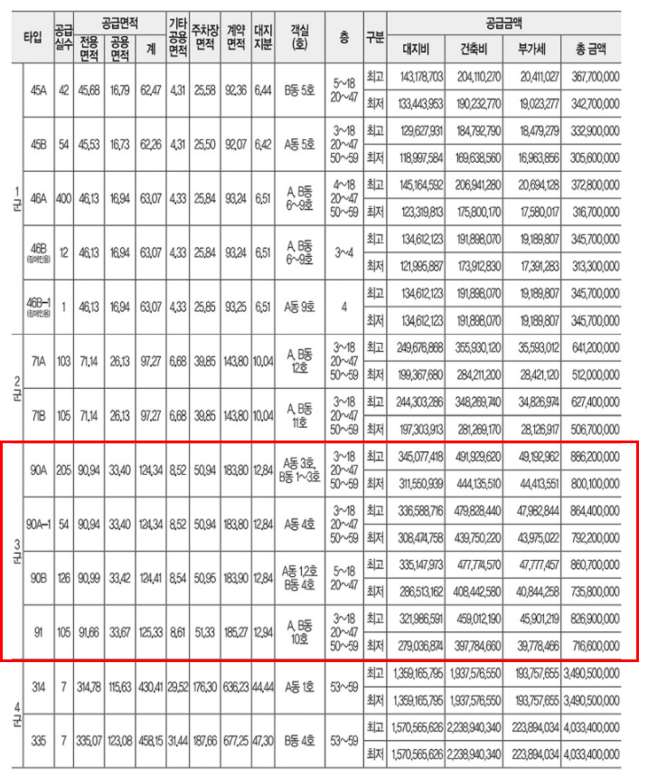 당연히 안 되겠지만 된다면 가장 프리미엄이 높게 붙고 탈출하기 용이한 3군 90A 타입을 청약해야겠어요.