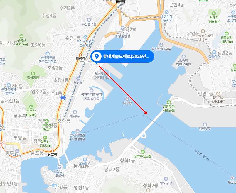 부산역 바로 옆 북항 재개발 구역에 위치한 롯데캐슬 드 메르입니다.