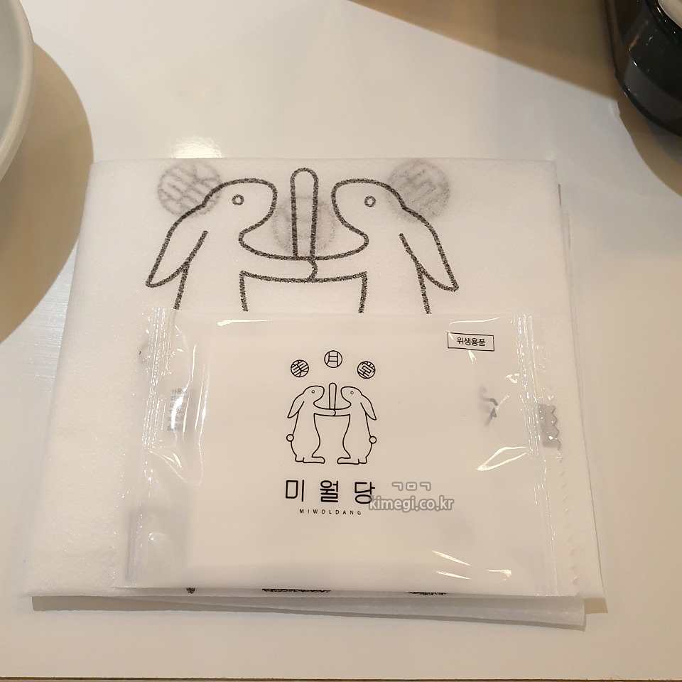 자리에 앞치마와 물티슈와 앞접시가 세팅되어 있었어요.