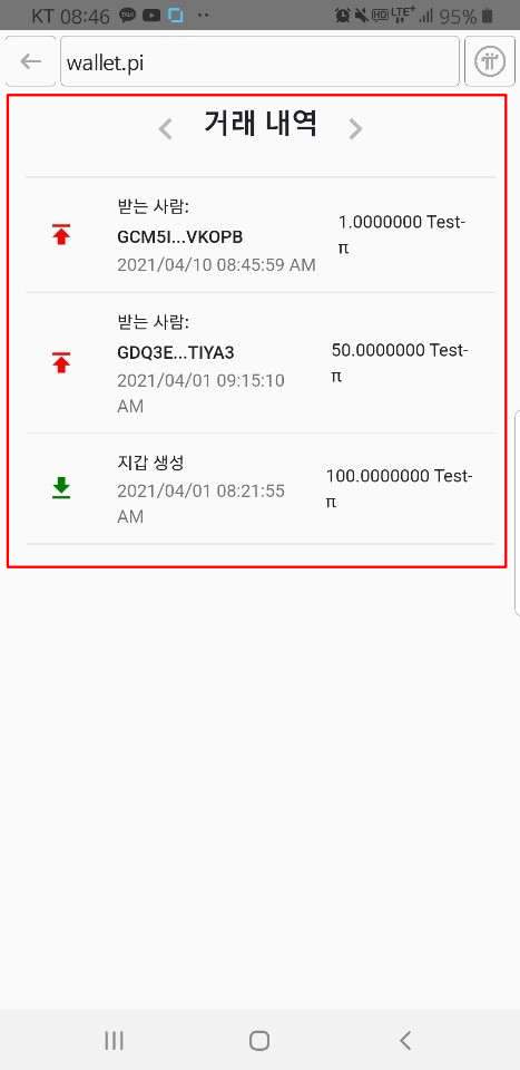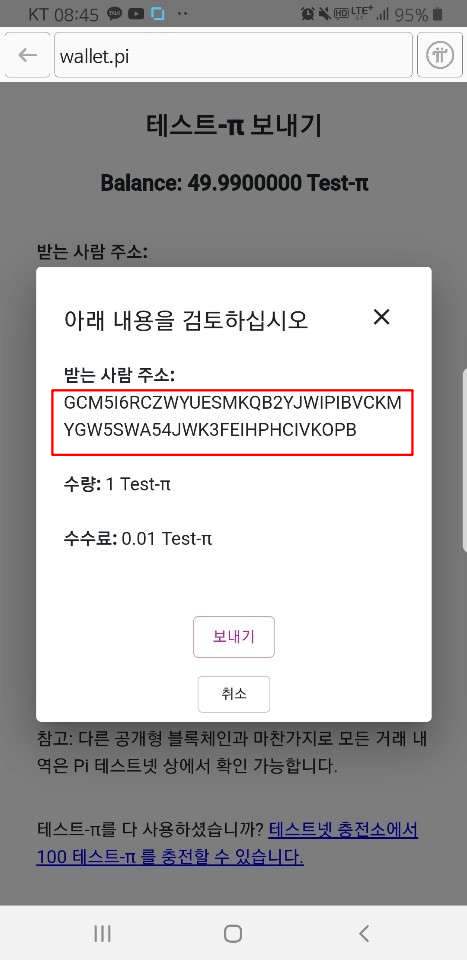 이렇게 테스트 파이 코인을 쉽게 전송하고 받을 수 있습니다.