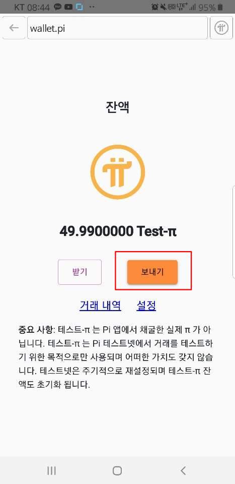 이렇게 테스트 파이 코인을 쉽게 전송하고 받을 수 있습니다.