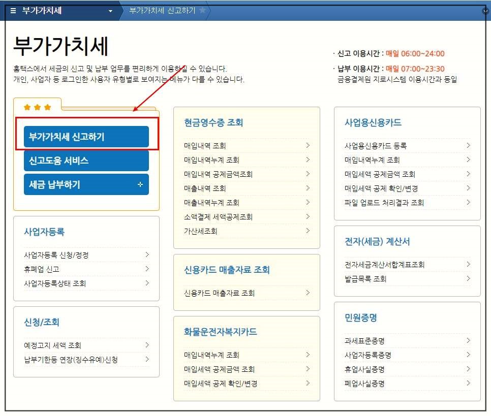 부가세를 조기 환급받기 위해서 홈텍스로 접속하여 공인인증서 또는 금융인증서로 로그인해주세요.