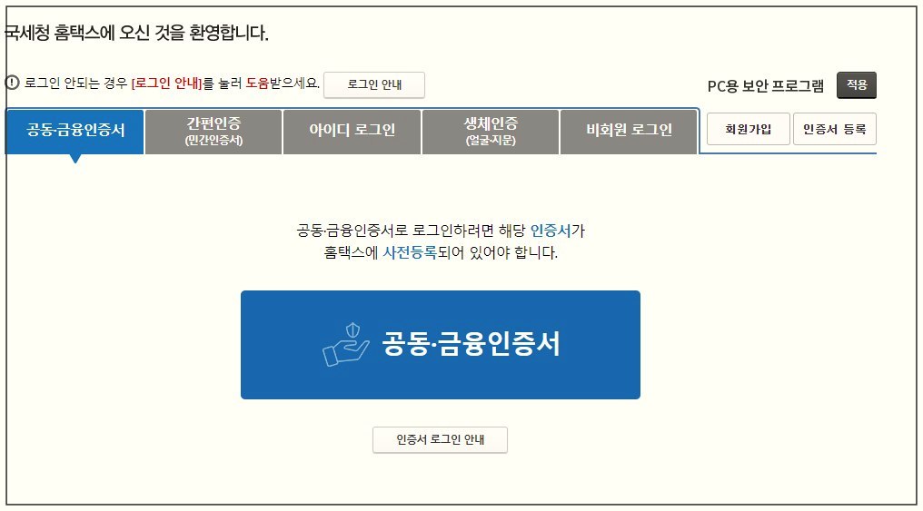 1. 홈텍스 접속 후 로그인