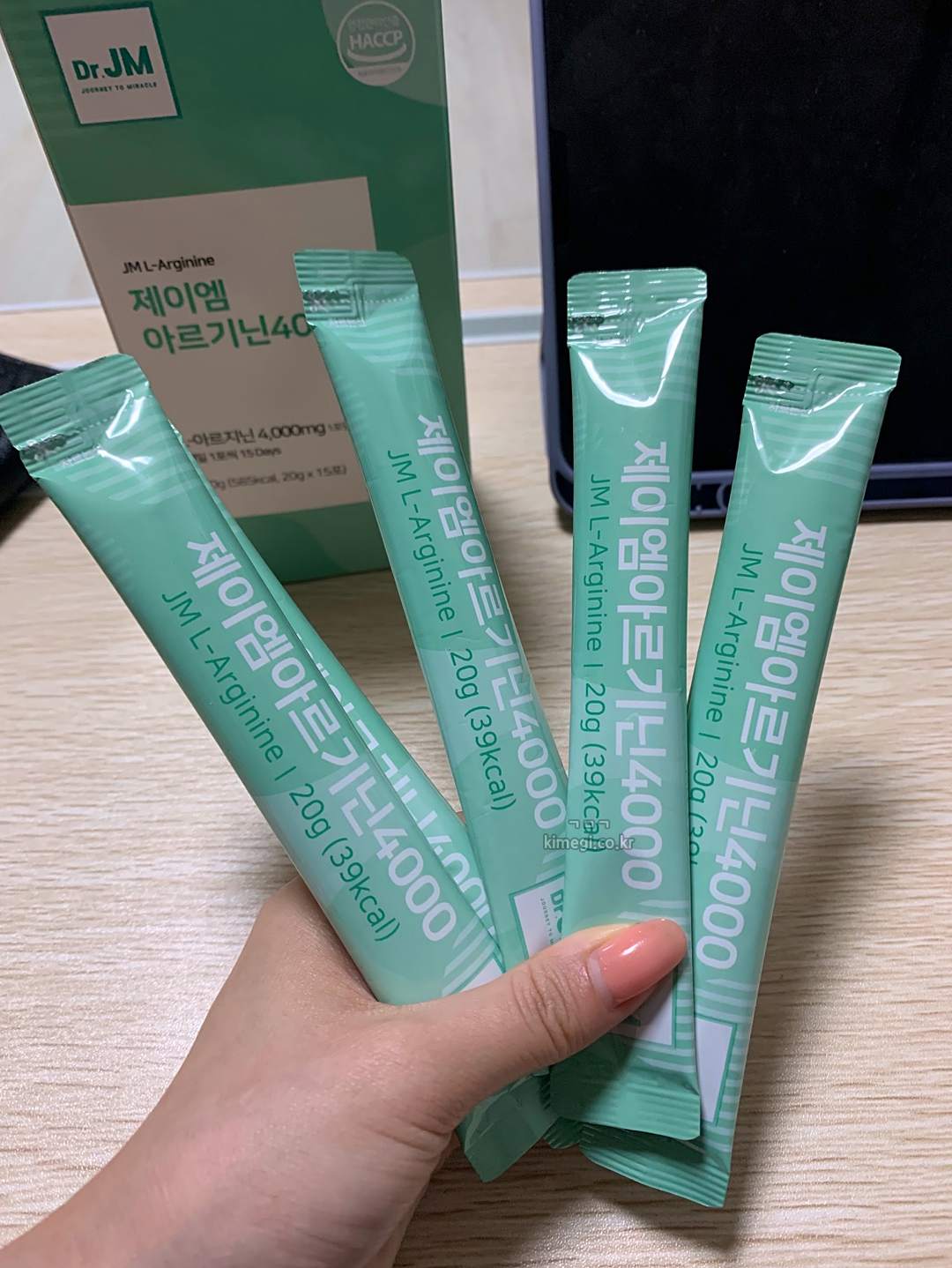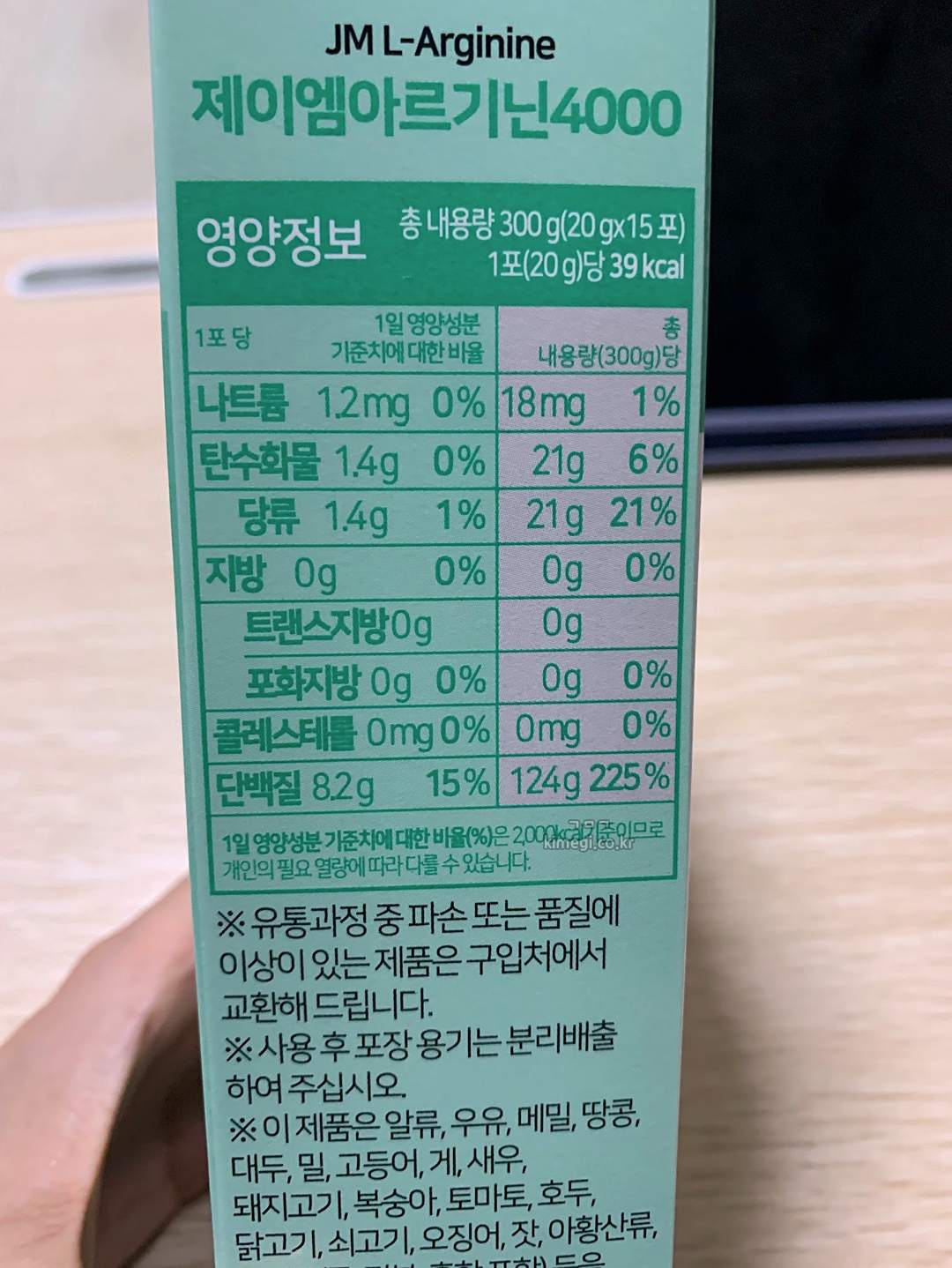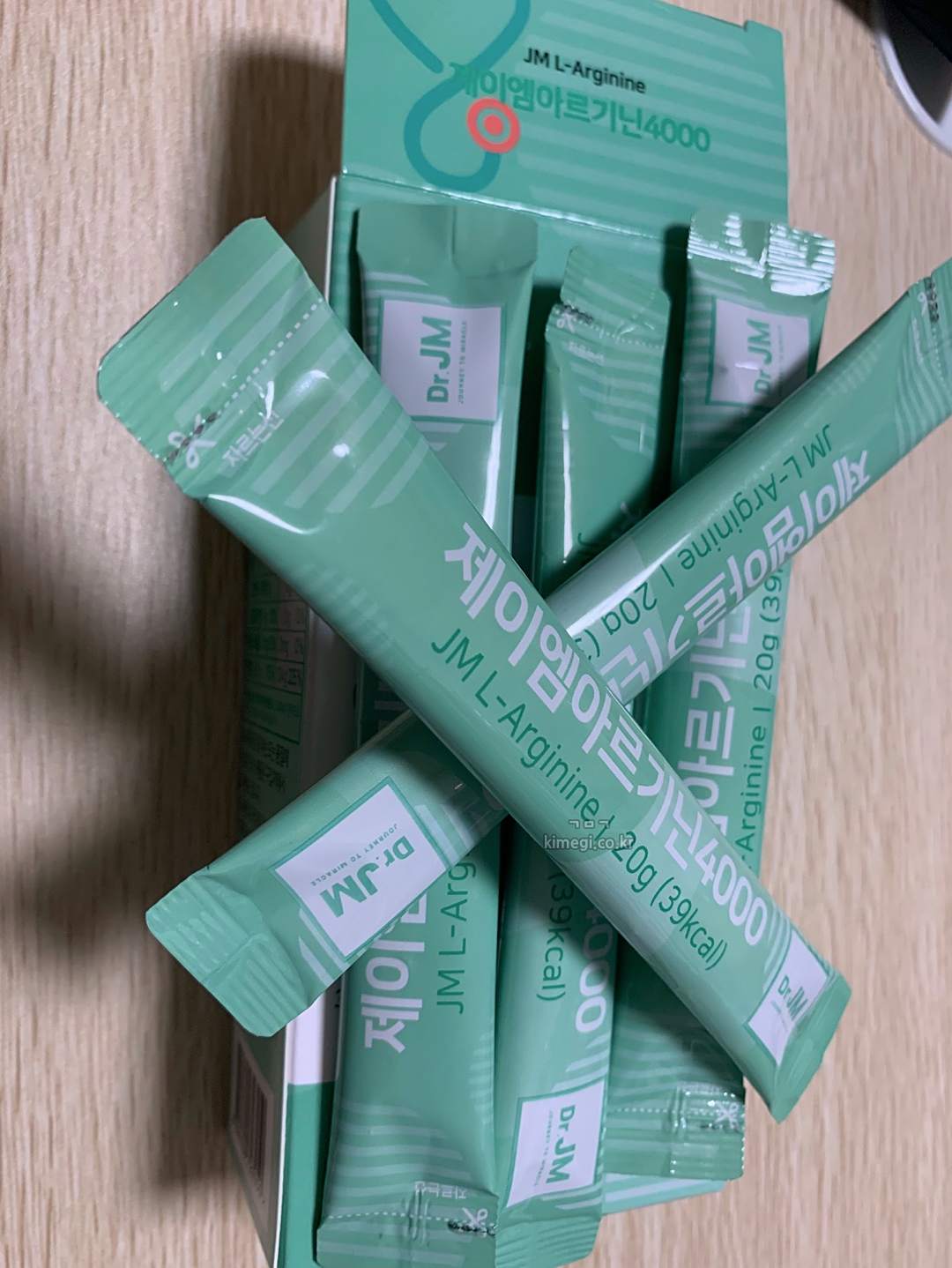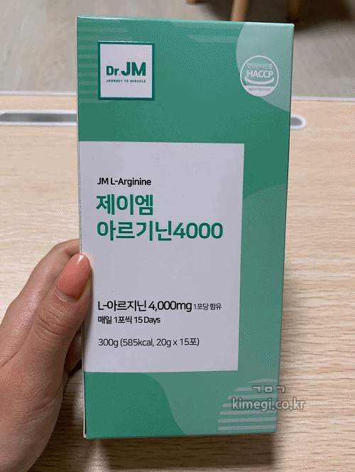 제이엠 아르기닌은 1포에 20g으로 4000mg의 아르기닌을 함유하고 있습니다.