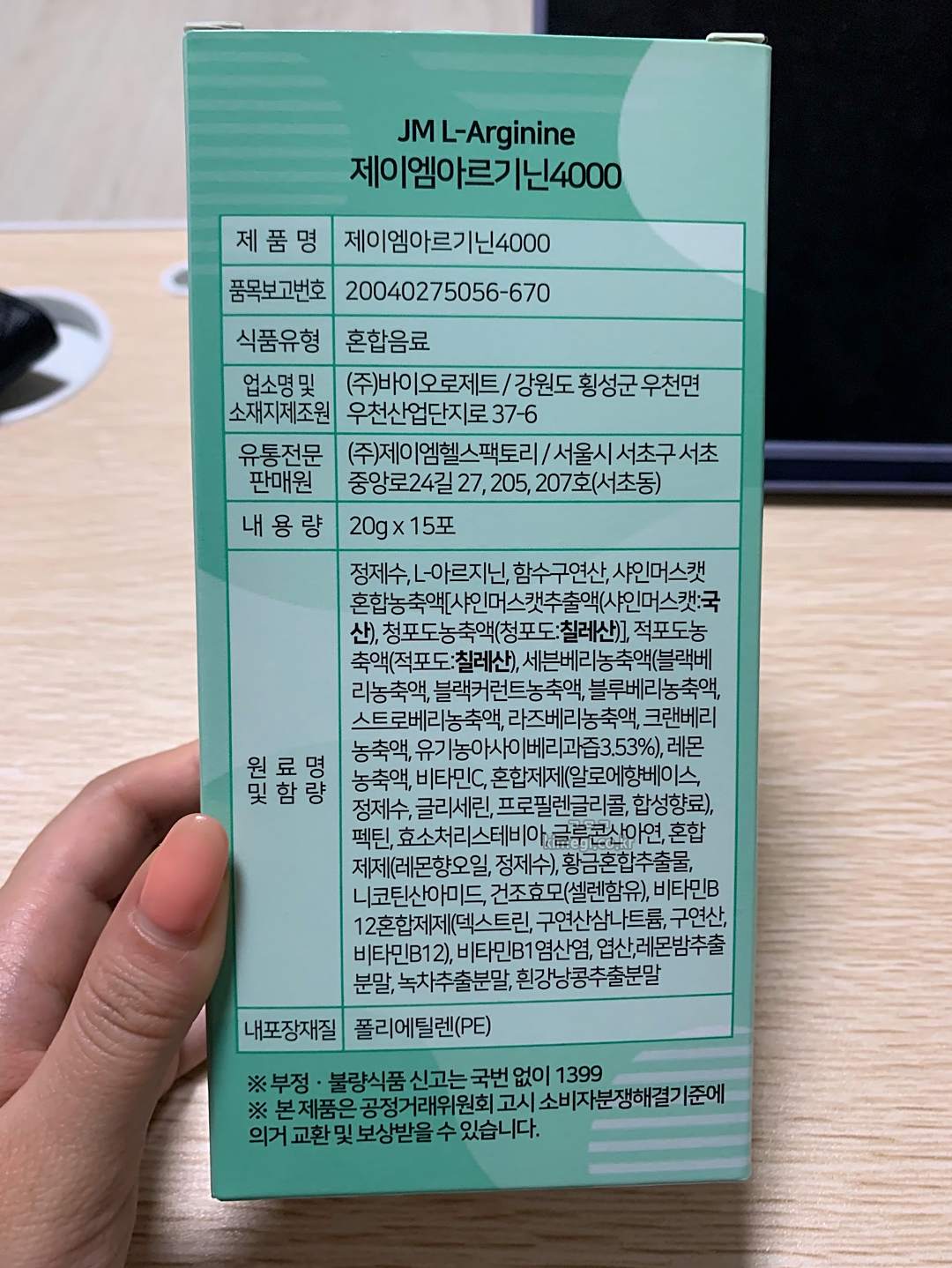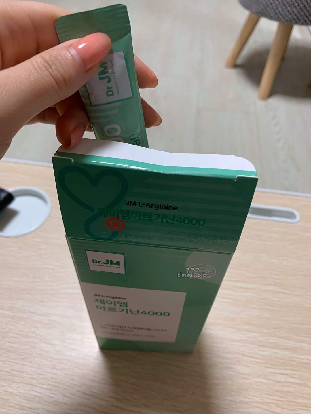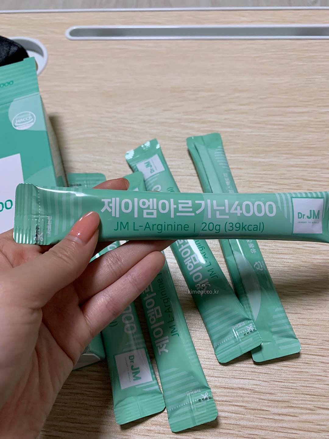 제이엠 아르기닌은 1포에 20g으로 4000mg의 아르기닌을 함유하고 있습니다.