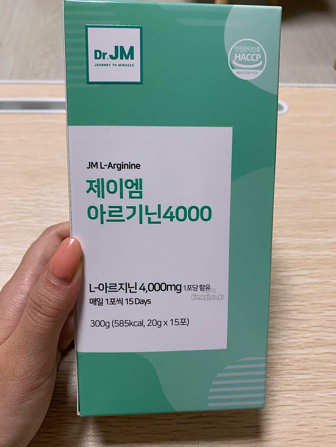 제이엠 아르기닌은 1포에 20g으로 4000mg의 아르기닌을 함유하고 있습니다.