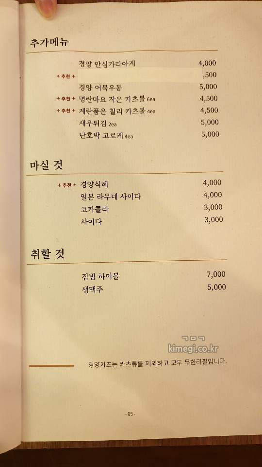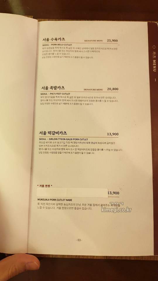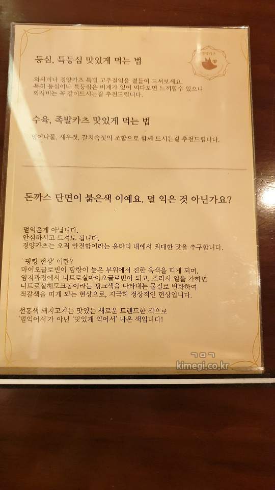 종로 돈카츠 맛집 경양카츠 메뉴판