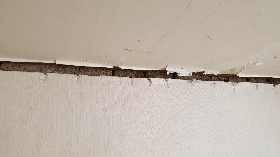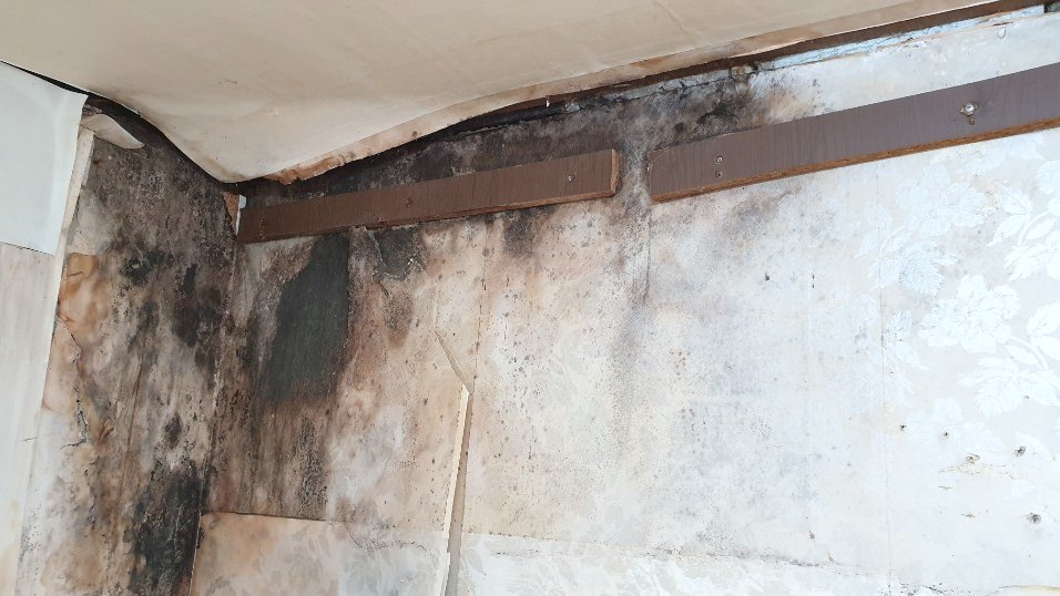 주방 싱크대를 철거하니 구석에 곰팡이가 엄청났습니다. 벽지가 다 삭아서 시꺼메졌어요. 그전에 살던 사람들이 벽지도 때지 않고 덧붙이기만 해서 3겹 정도가 쌓여있었어요. 곰팡이는 락스 물 뿌려가면서 직접 제거했습니다.