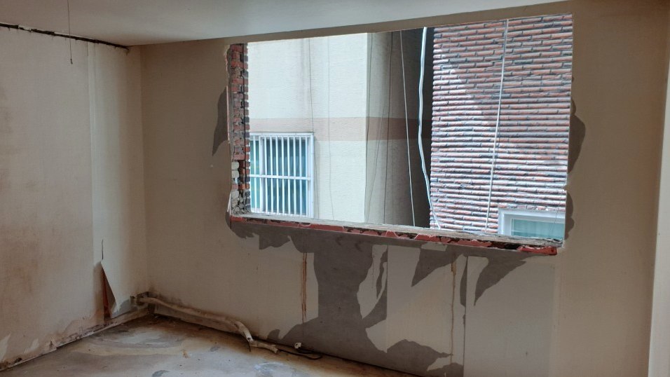 창호를 새로 하기 때문에 창호를 싹 다 뜯어냈습니다.
