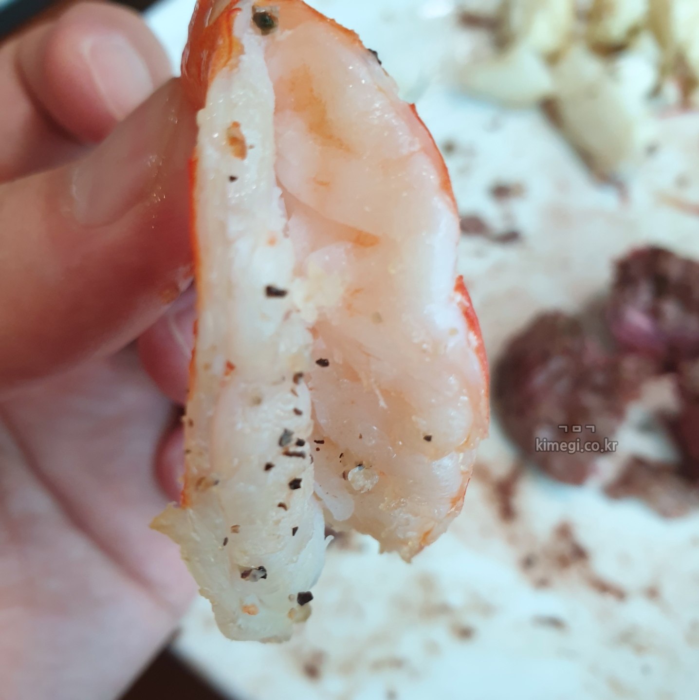 여자 친구가 먹지 않는 새우는 제가 다 먹었습니다. 튀긴 듯이 구워서 껍질까지 먹어도 되겠더라고요. 짭짤하게 간이 되어 있어 너무 맛있었습니다.