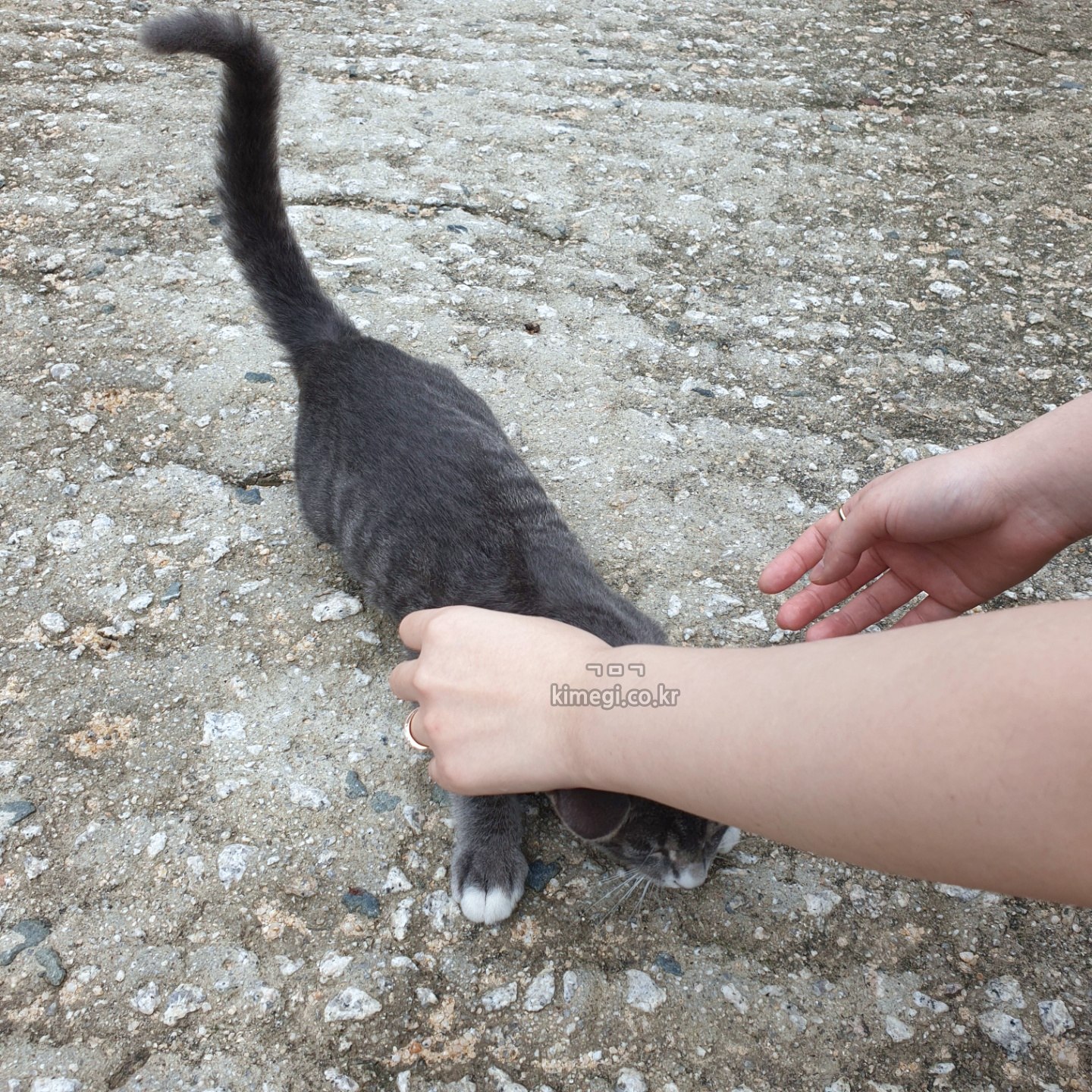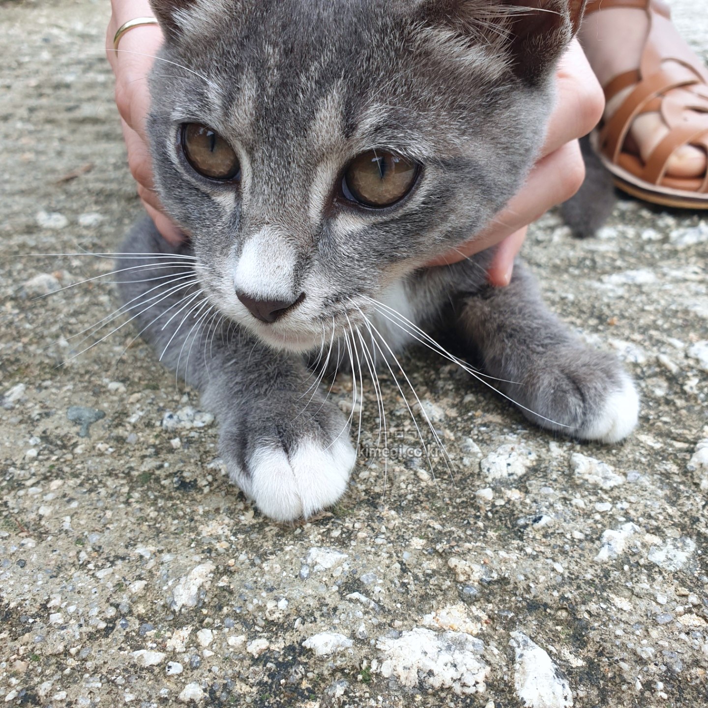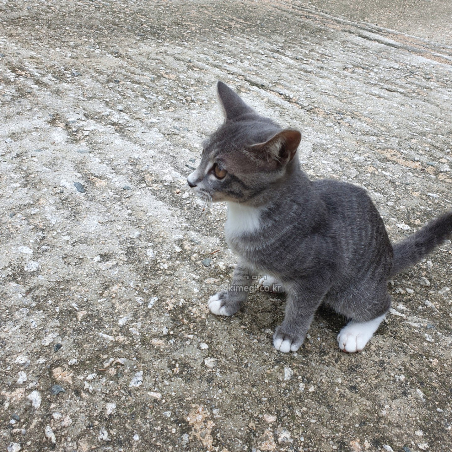 그런데 이번에는 너무 귀여운 회색 고양이가 있었어요. 완전 개냥이인 새끼 고양이라 애교가 너무 많았어요. 이름은 둥이였는데 길고양이인데 자꾸 와서 그냥 밥 주고 한다고 하시더라고요.
