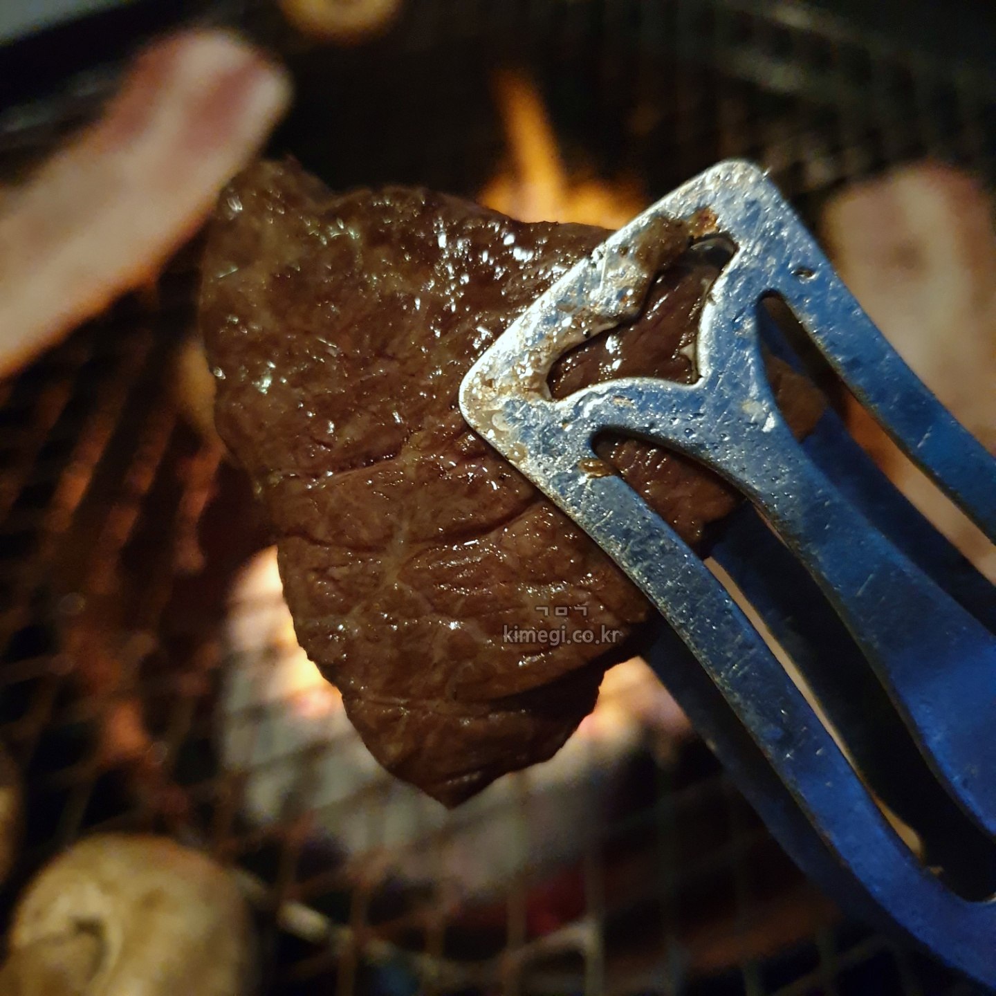 고기 다 굽고 불명 때리기.