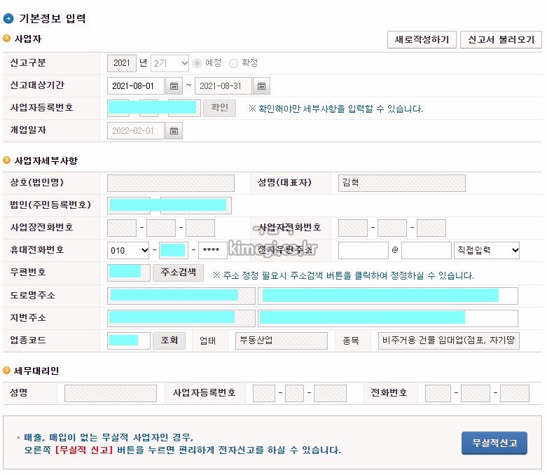 정기신고 기간이 아니면 아래와 같이 들어가지지 않기 때문에 기간을 악착같이 지키지 않아도 됩니다.
