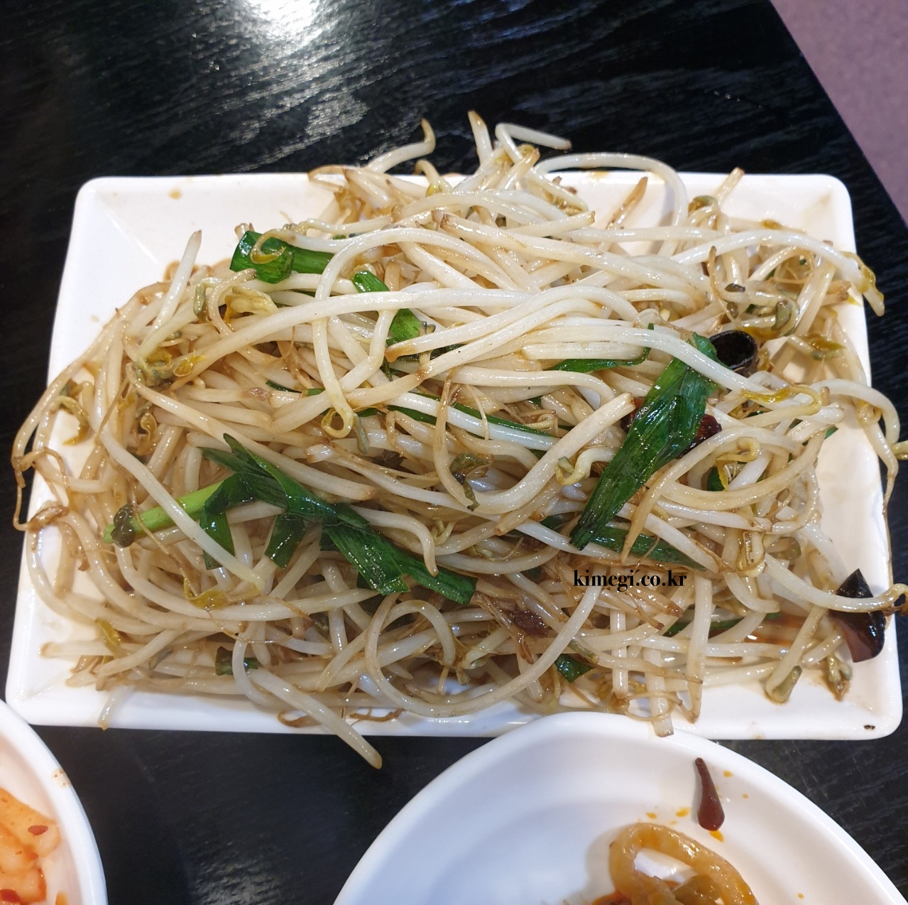 홀이 조금 한가해 지니까 숙주볶음을 서비스로 주셨어요. 많은 양꼬치집을 가보았는데 서비스로 반찬을 꼭 주시더라고요. 불향이 나면서 짭짤한 숙주 복음이 정말 맛있었어요.