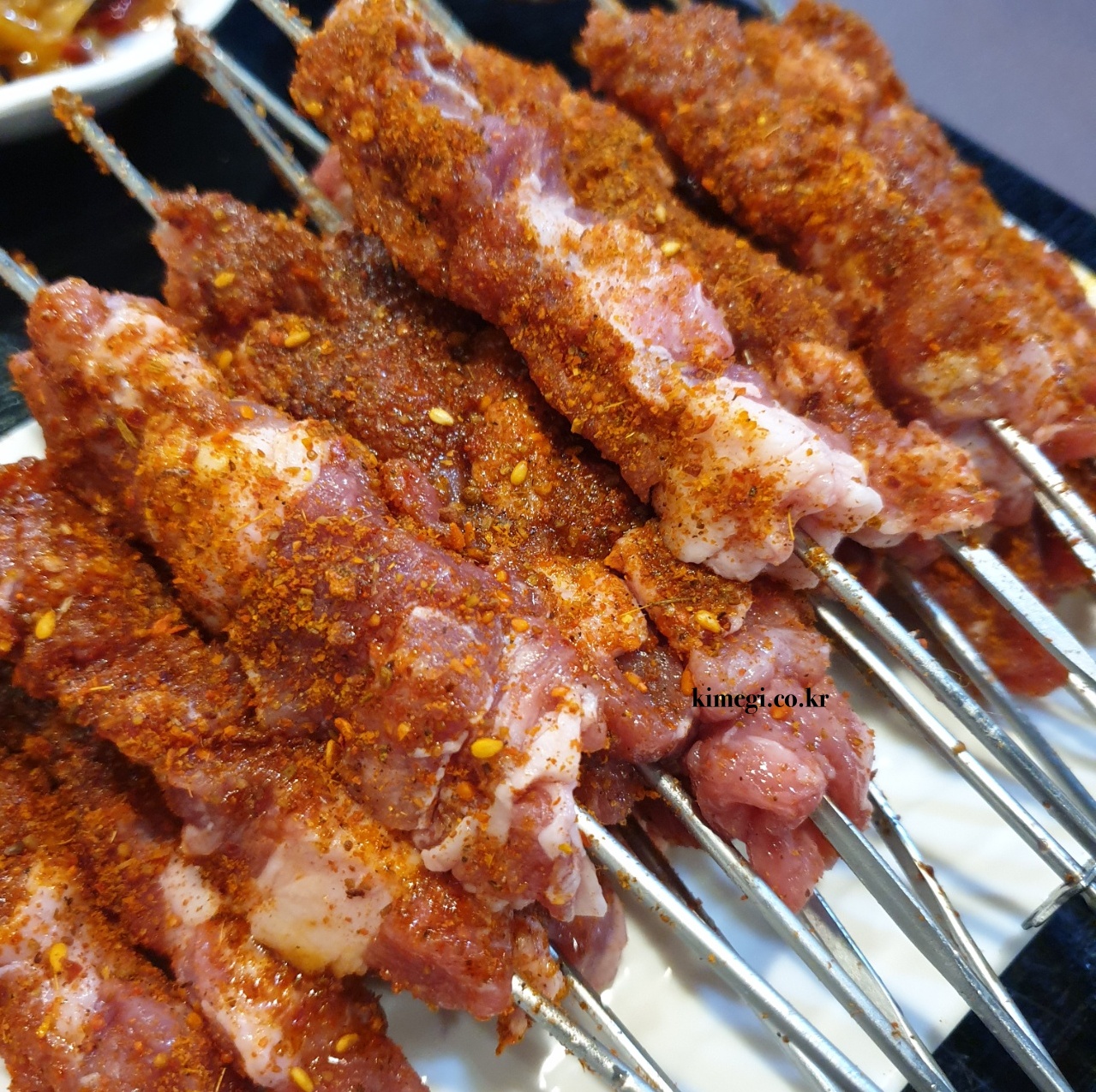사진에는 나오지 않았지만 마늘도 꼬치에 꽂아서 같이 구워주면 너무 맛있습니다. 마늘을 달라고 하면 까지 않은 마늘을 주실 거예요. 아마 모든 양꼬치 집에 마늘을 달라고 하면 그렇게 줄 거예요. 껍질이 붙어있는 마늘을 꼬지에 꽂아서 올려주면 껍질이 타면서 쉽게 벗겨지고 속에 마늘은 촉촉하게 익습니다.