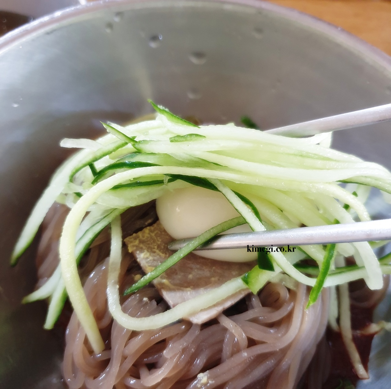 얼마 전에 백종원의 냉면 랩소디를 보았는데 평양냉면이 요즘 유행하고 있더라고요. 인스타를 보아도 젊은 사람들이 평양냉면 맛집들을 많이 방문해서 사진을 올리더라고요. 저도 옛날에 평양냉면을 먹고 슴슴한 맛에 쉽게 도전하지 못하겠더라고요. 그래서 비빔으로만 먹긴 하는데 랩소디를 보고 도전을 해보았어요. 평양냉면 초보들은 비빔을 주문하고 육수를 추가로 달라고 하면 접근하기 쉬울 거예요. 비빔으로 먹고 육수를 부어서 물냉면으로도 먹을 수 있어요. 저는 사실 아직 육수의 그 맛을 잘 모르겠더라고요.