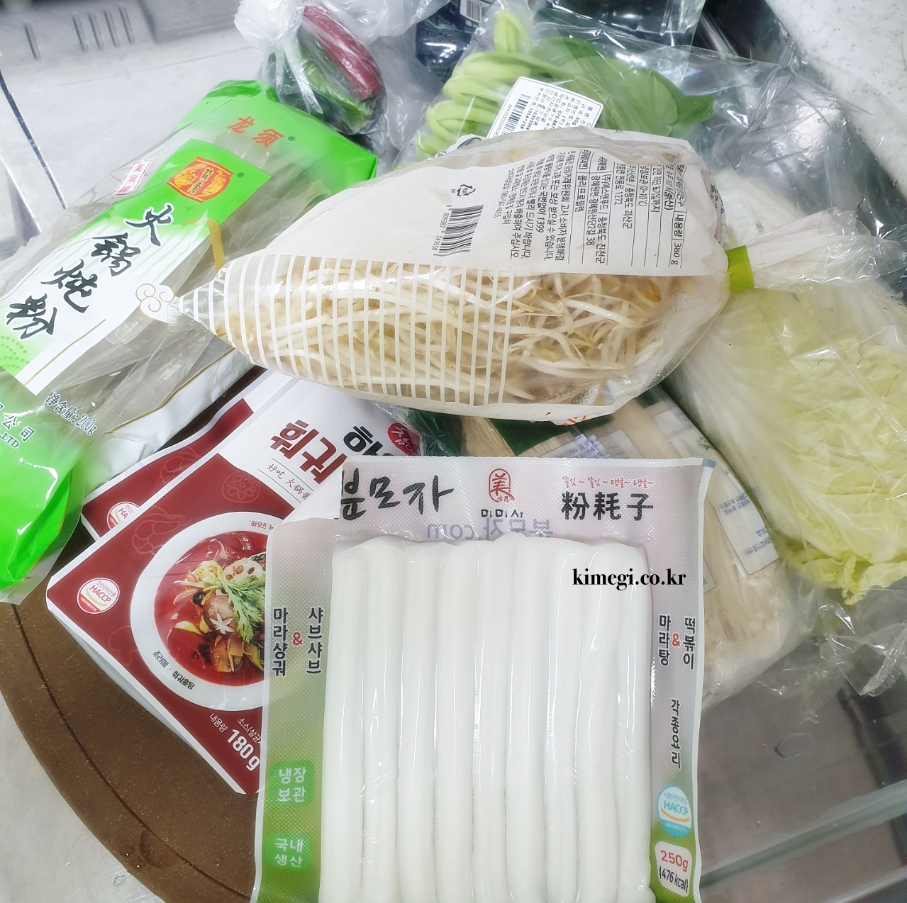 마라탕에 넣을 중국식 당면, 분모자, 팽이버섯, 알배추, 청경채를 같이 주문했어요. 링크도 함께 남겨 놓을 테니 마라탕 만드실 때 같이 주문하시면 편할 거예요.