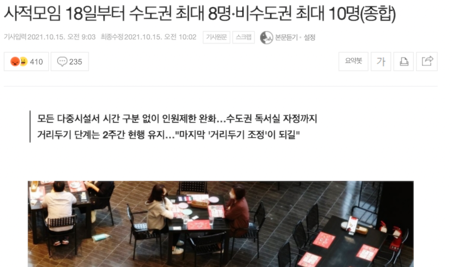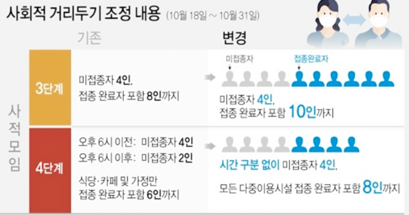 18일 부터 코로나 인원제한 사적모임 8인 가능