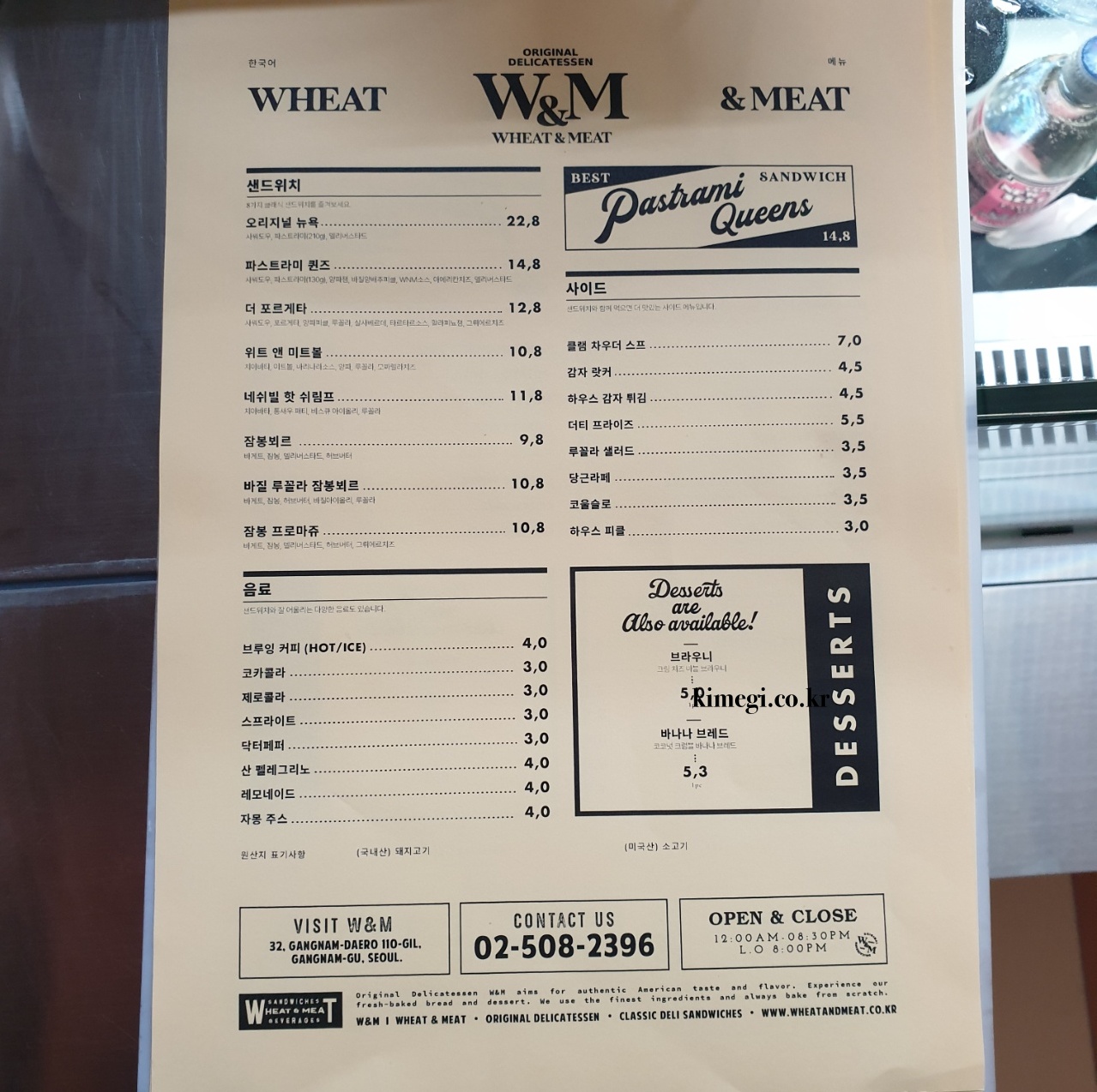 신논현 맛집 W&M 메뉴판