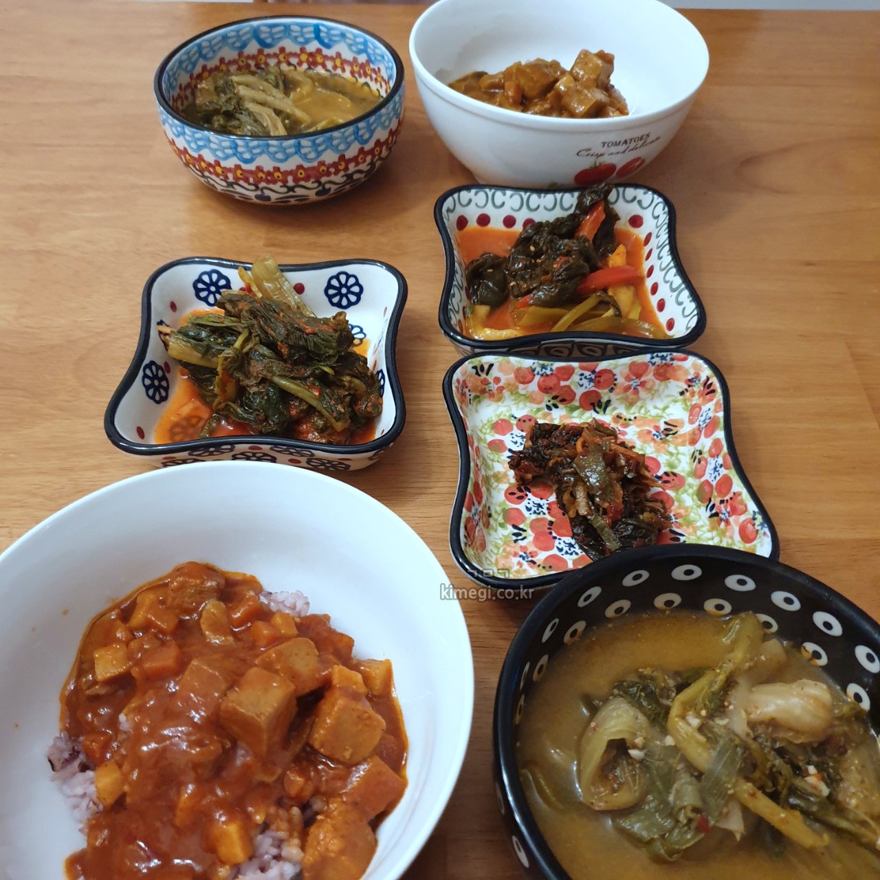양쪽 어머님들이 주신 반찬만 덜어서 먹으면 10분 만에 거한 한상이 됩니다. 양가 부모님이 다 서울에 살고 계셔서 집에 김치, 밑반찬이 부족하지 않아서 너무 편하네요. 가끔은 너무 많이 주셔서 냉장고가 빈틈없지만 사명감으로 냉장고를 비우기 때문에 금세 여유가 생기곤 해요.