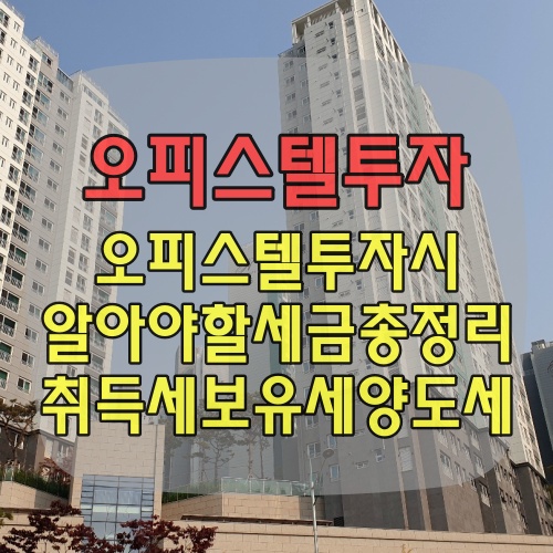 부동산을 투자 할 때는 세금이 절대 빠질 수가 없습니다. 오늘은 오피스텔 투자시 알아야할 세금을 총정리해 보겠습니다.