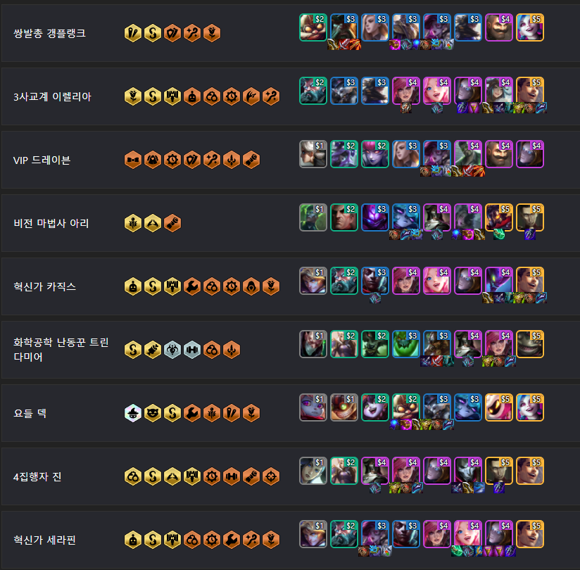 이렇게 바뀐 시너지와 챔피언에 대해서 알아보았습니다. 이렇게 바뀐 것만 알아본다고 바로 실력이 늘지는 않겠죠. 새로운 조합과 아이템에 대해서는 빠르게 확인하고 알아보아야 합니다. 롤체지지 사이트에서 추천 메타에 대해 빠르게 알아보고 따라해 볼 수 있습니다. 앱으로도 나와있어 항상 보면서 게임을 하고 있어요. 초보자들에게 특히 도움이 되는 사이트이니 참고해보시면 LP올리는데 많은 도움이 될거에요.