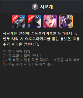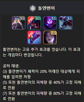 기존 시너지에 추가된 효과로는 사교계와 돌연변이가 있습니다. 사교계는 5 사교계 효과가 생겼고 돌연변이는 7돌 연변이 효과가 생겼습니다.