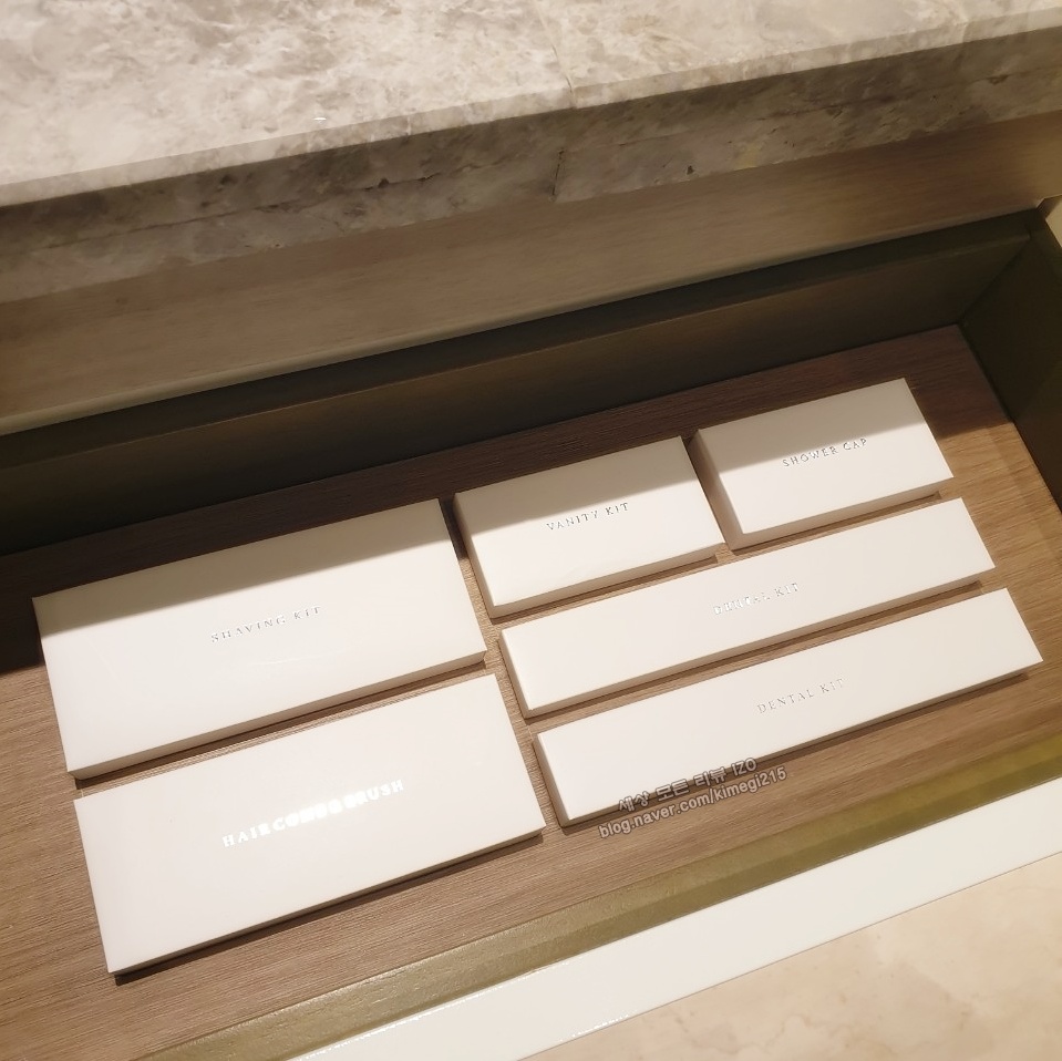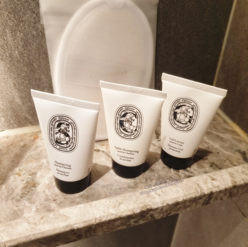 드라이기부터 욕실 어메니티가 모두 준비되어 있었어요. 시그니엘 어메니티는 딥티크 제품으로 향이 정말 좋았습니다. 어메니티는 가져가도 되는데 저희는 수영장을 많이 이용해서 다 써버렸더라고요. 다른 리뷰를 보니 추가로 요청하면 1세트 더 준다고 하네요. 챙겨 올 걸 후회가 되네요. 샤워타월도 진짜 좋은 제품이더라고요. 이것은 찾아보고 집에 사두려고 합니다. 1회 용품까지도 모두 고급스러웠습니다.