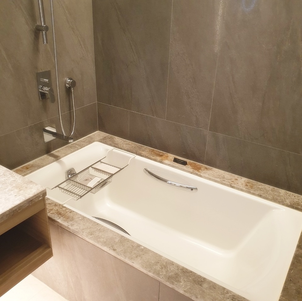 욕조에는 입욕제와 소금이 준비되어 있어 자기 전에 따뜻하게 목욕을 즐길 수 있었어요. 직원분도 좋은 제품이라고 꼭 체험하라고 하더라고요.