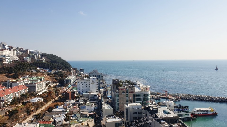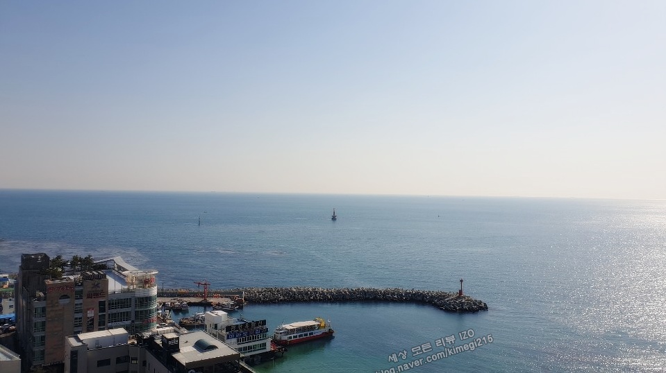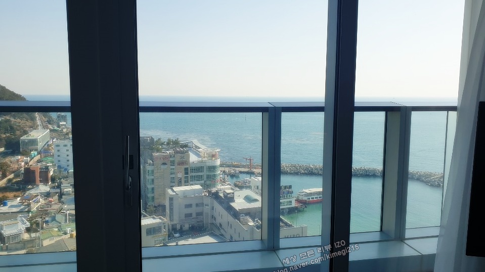 블루라인 이과 함께 미포항을 볼 수 있었습니다. 저는 미포항도 정말 예쁘다고 생각해요. 창문 밖 발코니로 나가서 볼 수도 있어요.