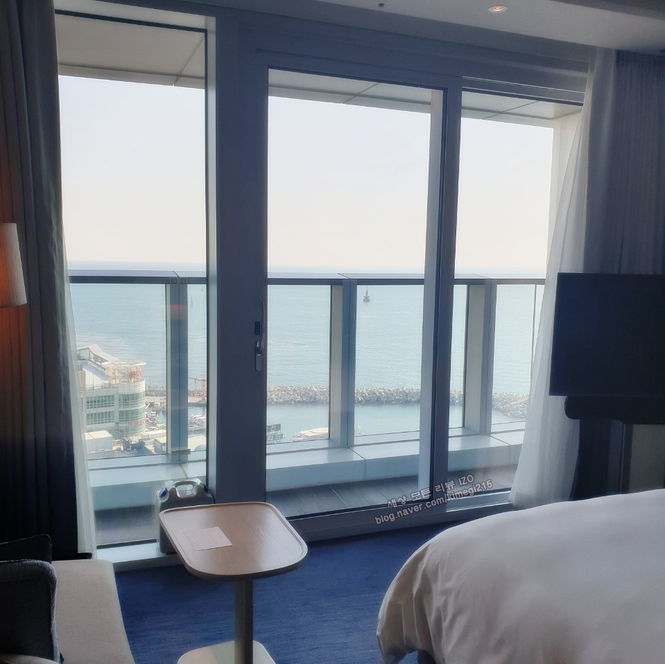 시그니엘 호텔은 바다에 위치하고 있지만 보는 바다가 다릅니다. 해운대를 보는 뷰와 미포항을 보는 뷰가 있어요. 물론 시티뷰도 있습니다. 저희가 머무른 방은 미포 하을 바라보는 뷰로 아침에 일출을 볼 수 있다고 해요. 해운대를 바라보는 곳은 일몰을 볼 수 있는 위치입니다.