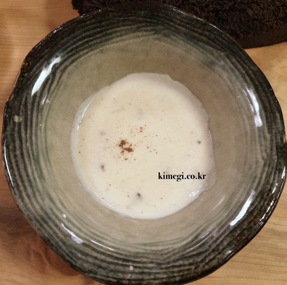 차례가 되면 번호를 부르고 자리에 앉으면 따뜻한 물과 수프를 줍니다. 크림수프인데 정말 맛있습니다. 체면 차리지 않고 한 방울도 남기지 않고 긁어먹었습니다. 정말 맛있는 수프였어요. 강남 W&M에서 주문해서 먹었던 수프만큼 맛있었어요.