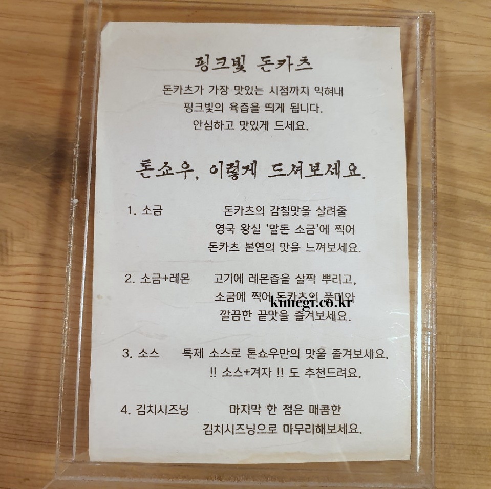 돈카츠를 맛있게 먹을 수 있도록 먹는 방법도 추천해 주었어요. 일단 추천한 데로 한 번씩 먹어보고 제 마음대로 먹어보았습니다.