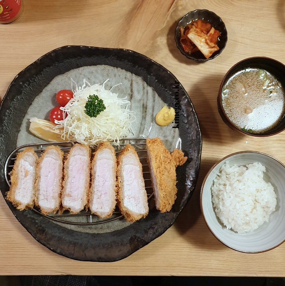 등심 카츠입니다. 안심이 아무리 맛있어도 기름진 등심을 이길 수 없습니다. 물론 개인적인 취향입니다. 등심 카트의 저 하얀 비계 부분이 정말 맛있습니다. 살이 찌는 이유가 있는 것 같아요.