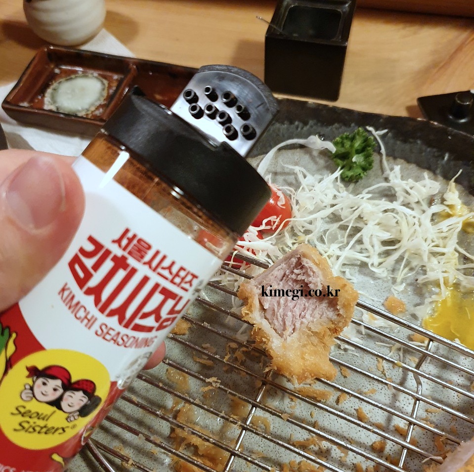 개인적으로 가장 별로였던 김치 시즈닝을 뿌려먹는 방법입니다. 음 그냥 별로였어요. 맛있는 돈카츠를 그냥 김치돈카츠를 만들어버리는 느낌이었어요. 한번 먹고 치워버렸습니다.